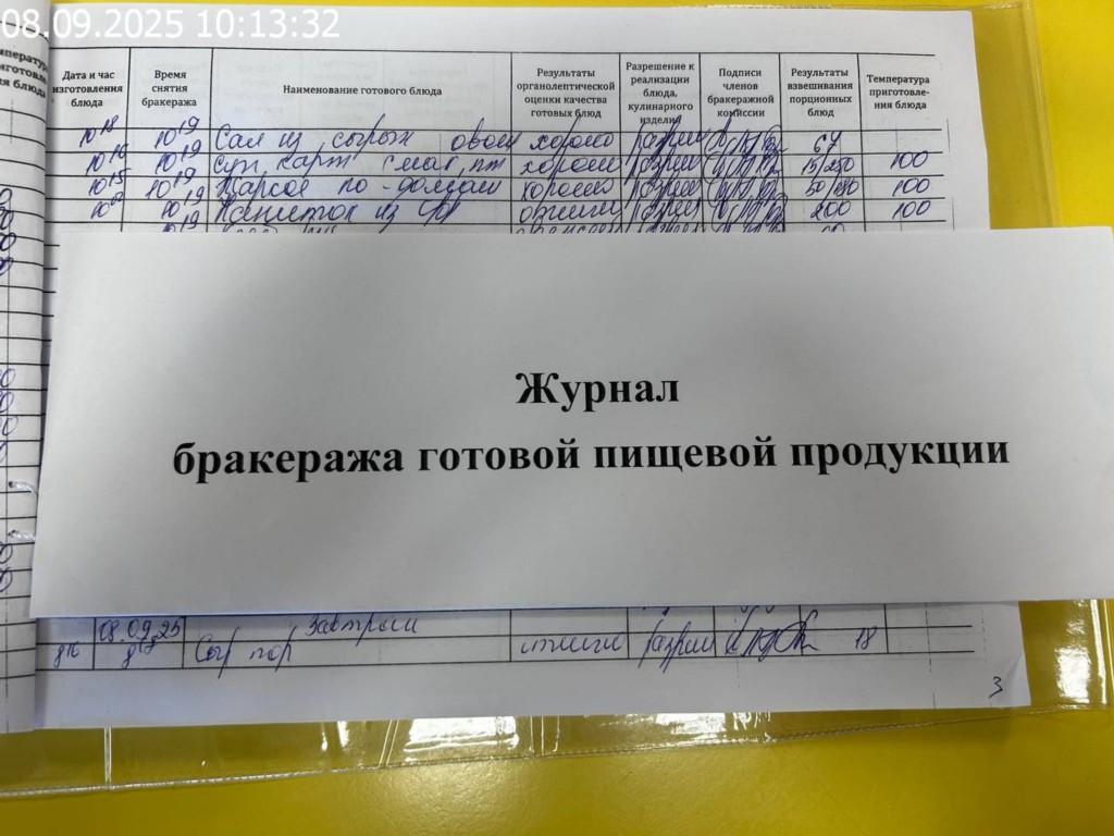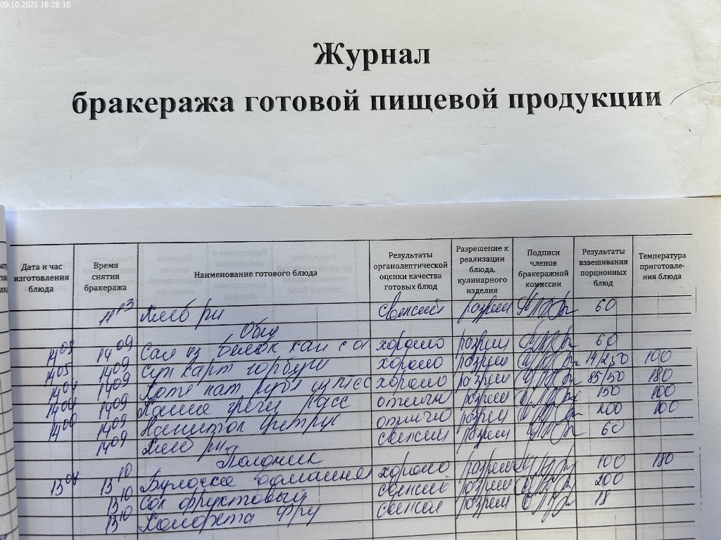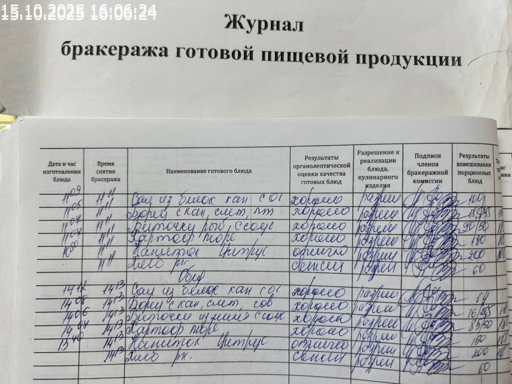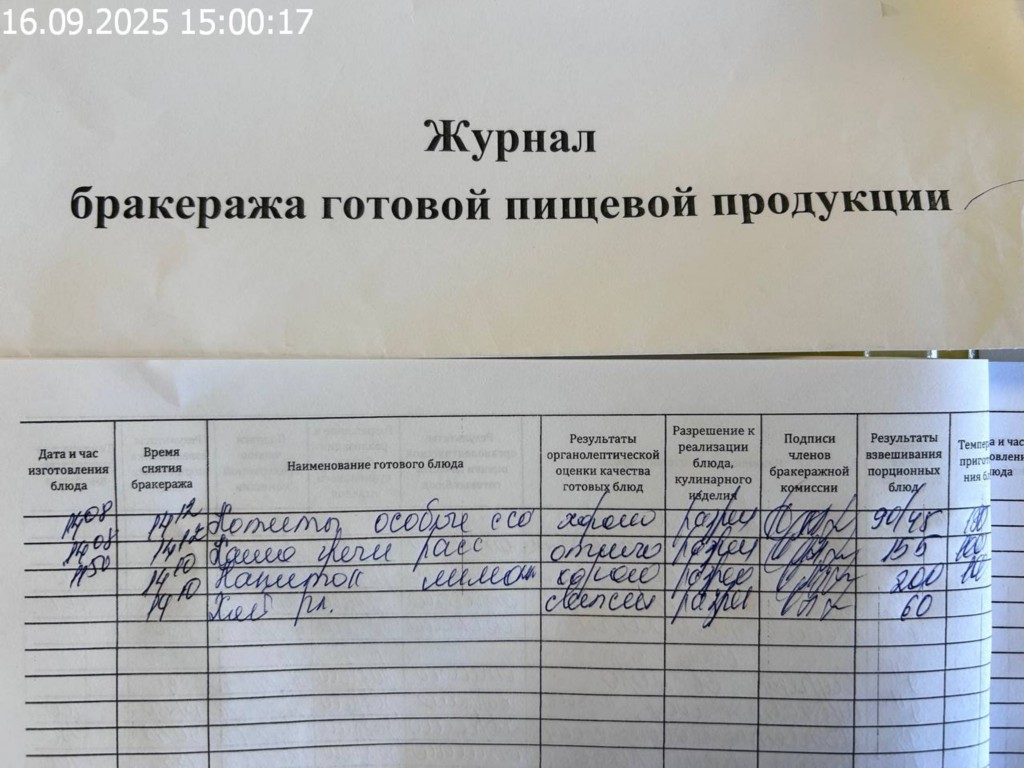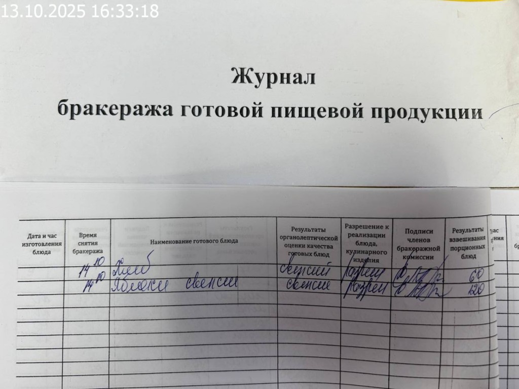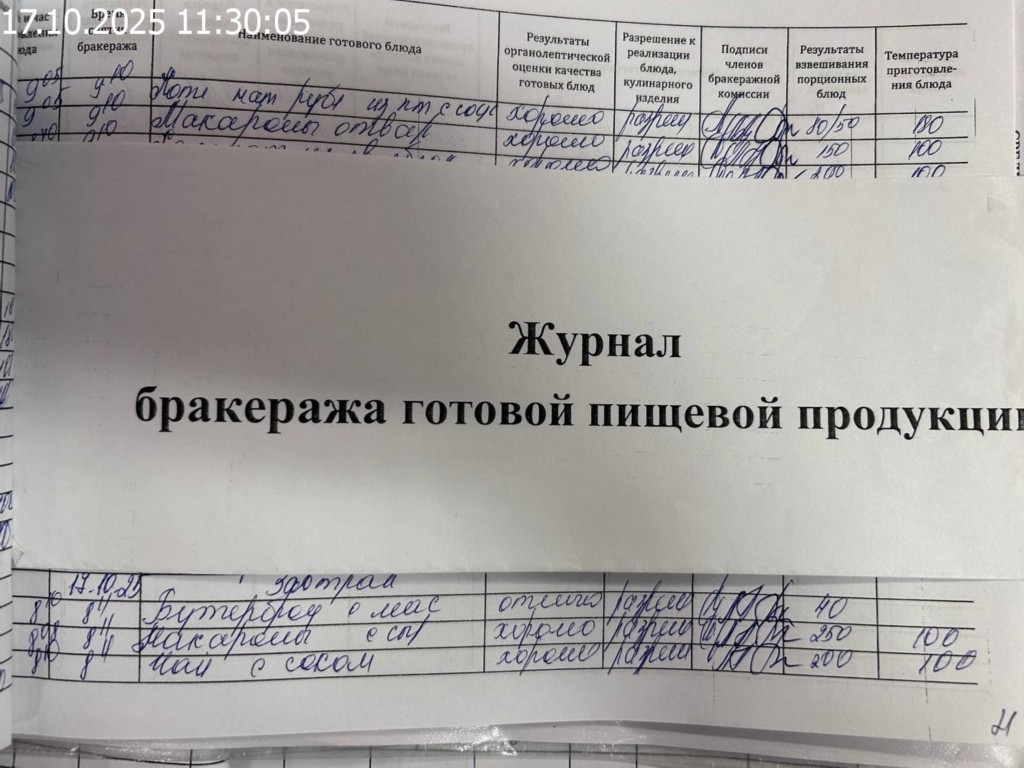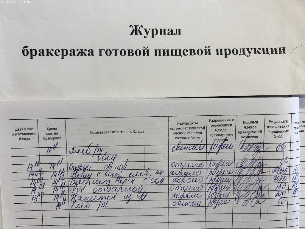 Журнал бракеража готовой пищевой продукции