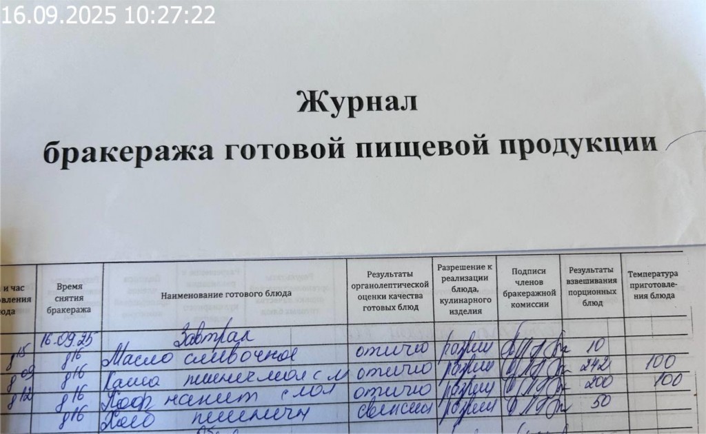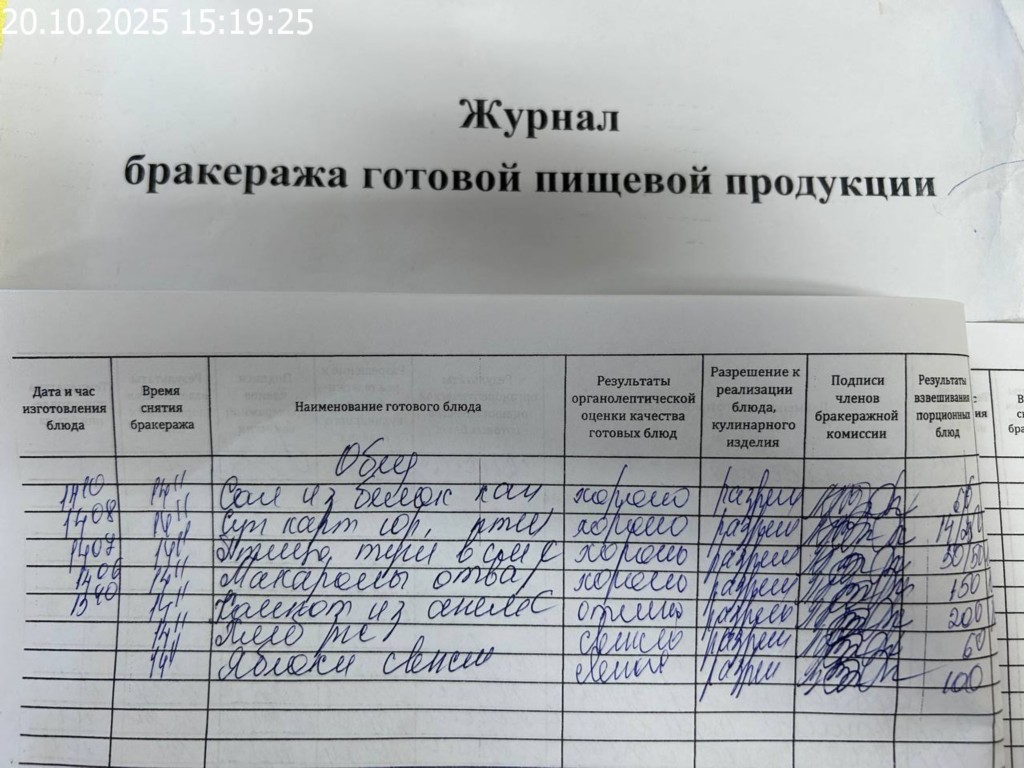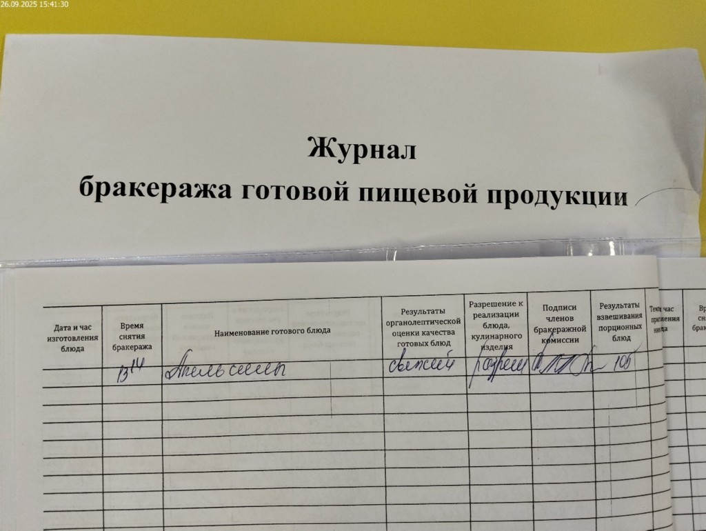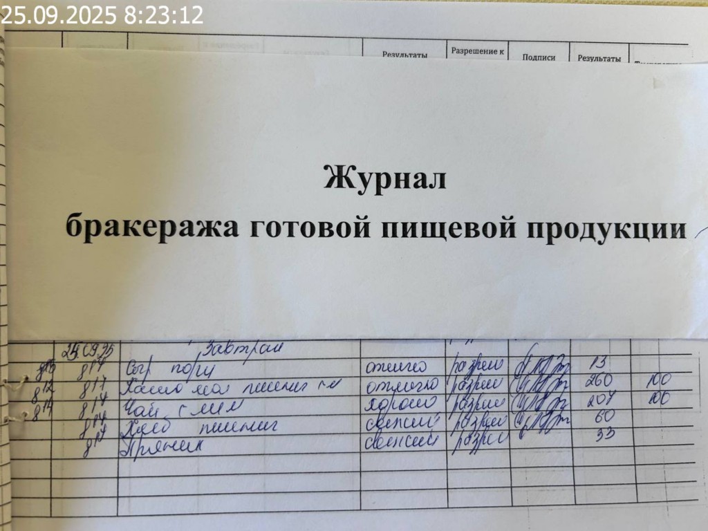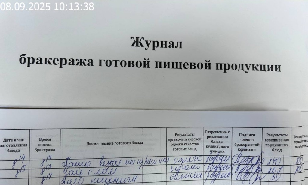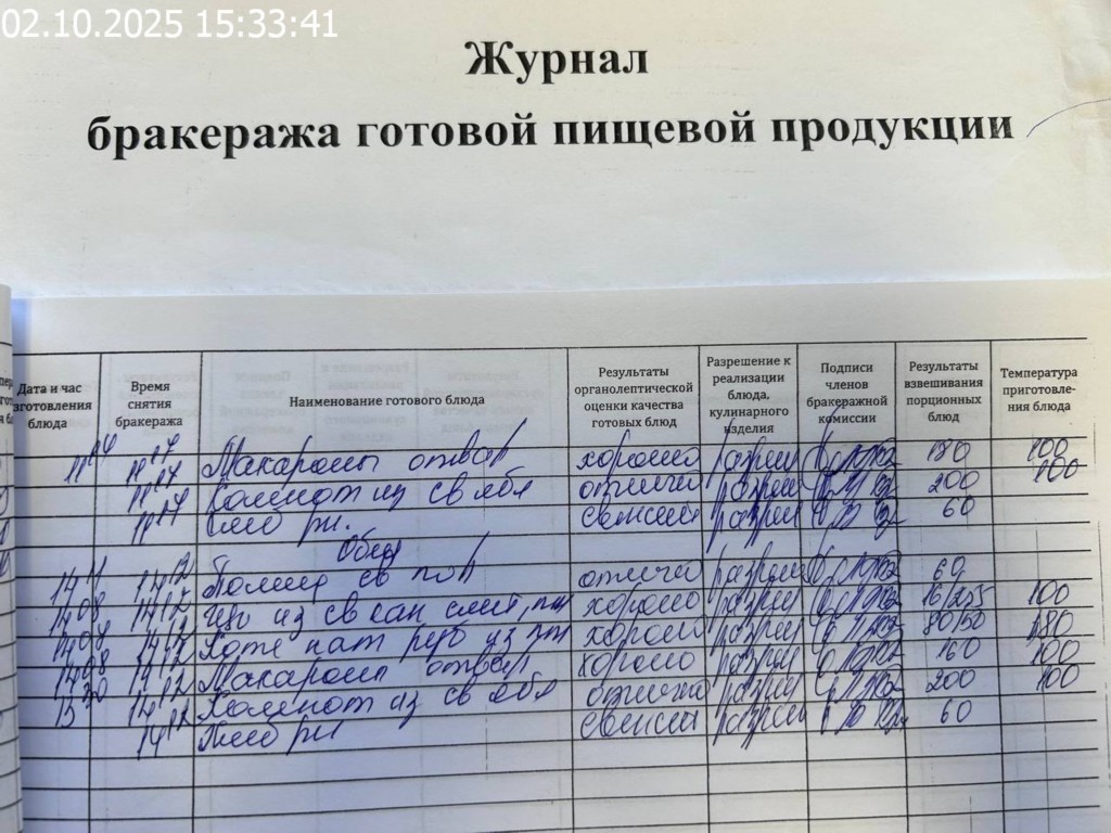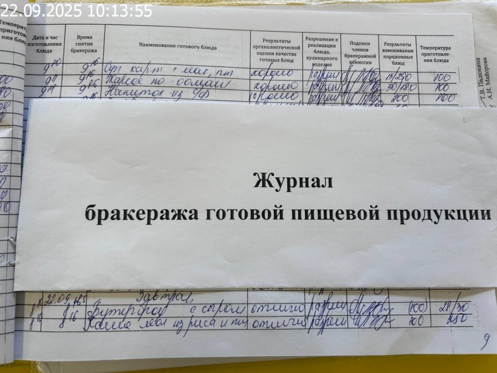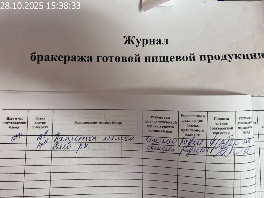 Журнал бракеража готовой пищевой продукции
