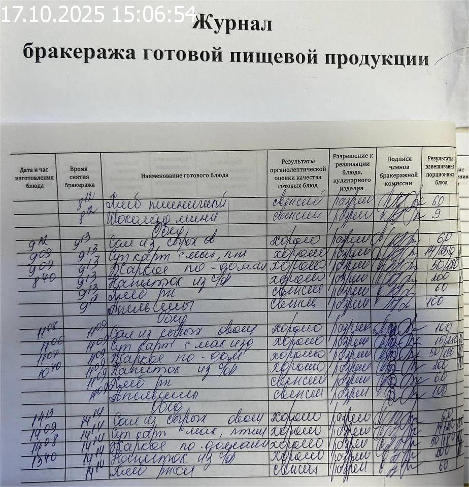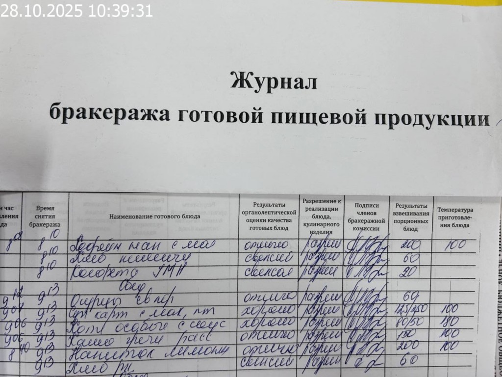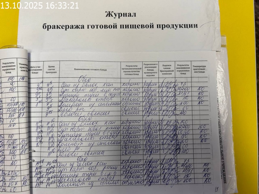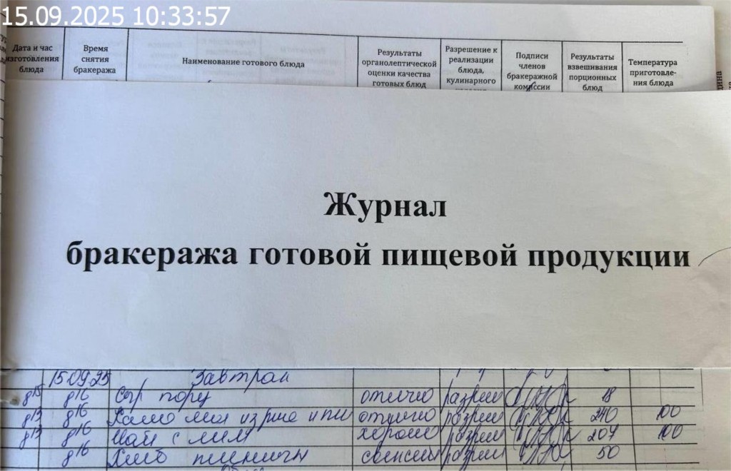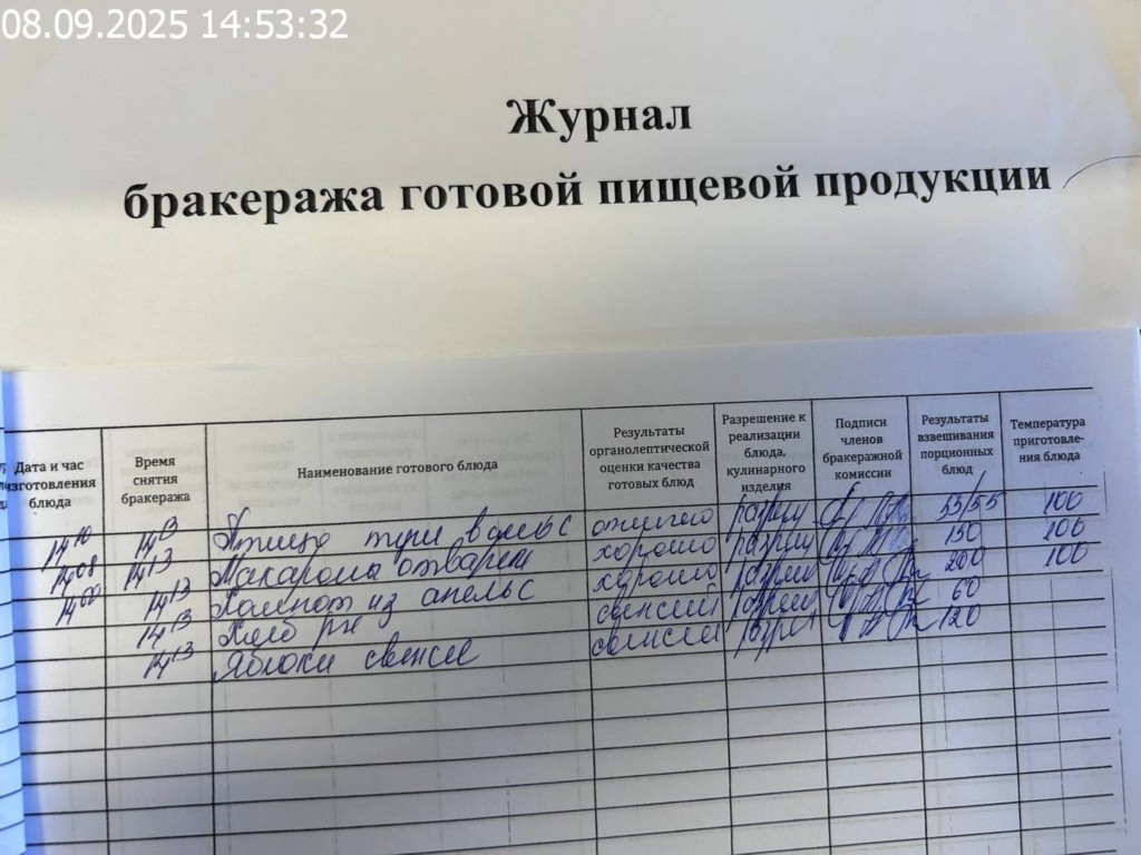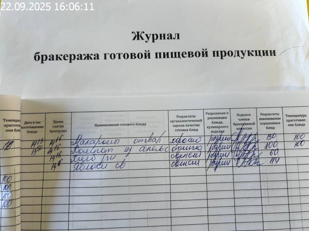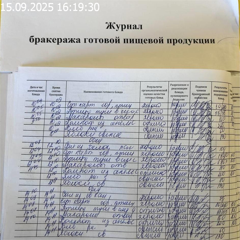 Журнал бракеража готовой пищевой продукции