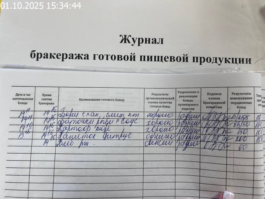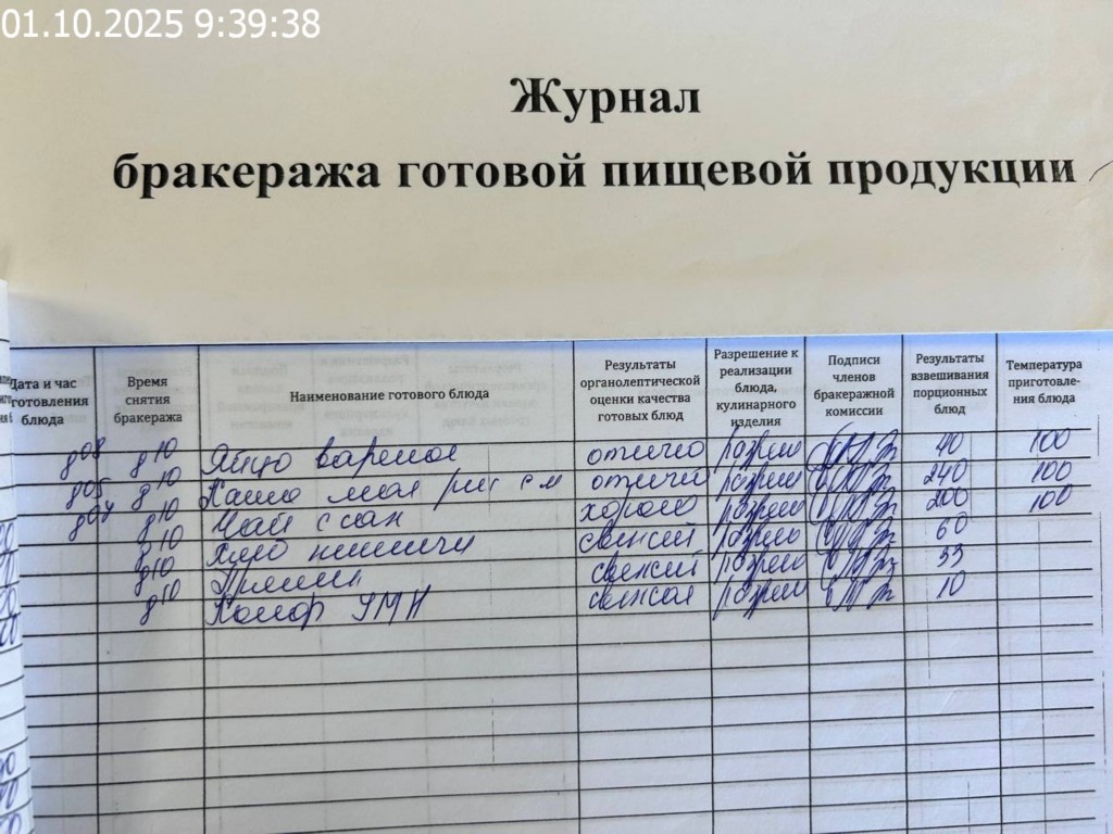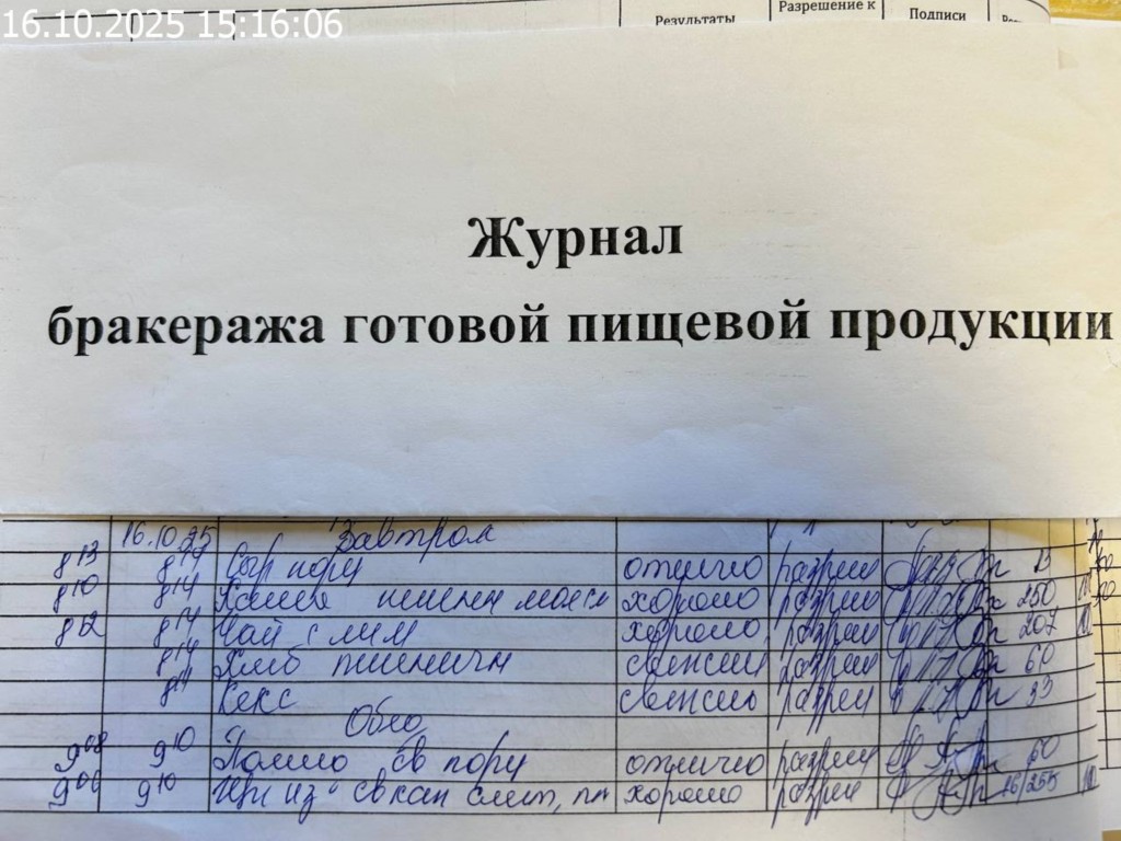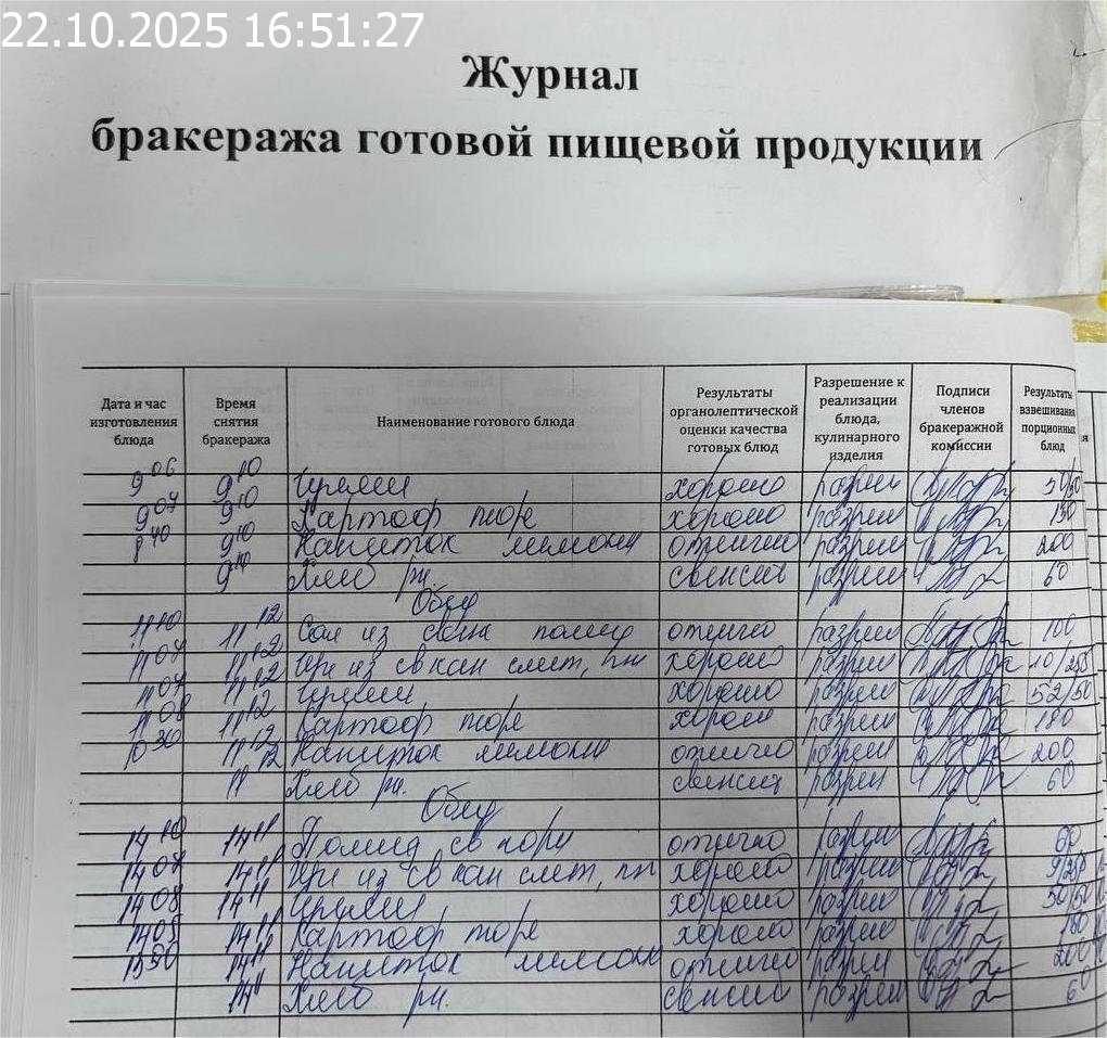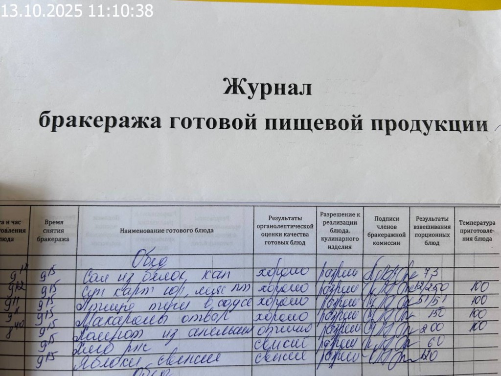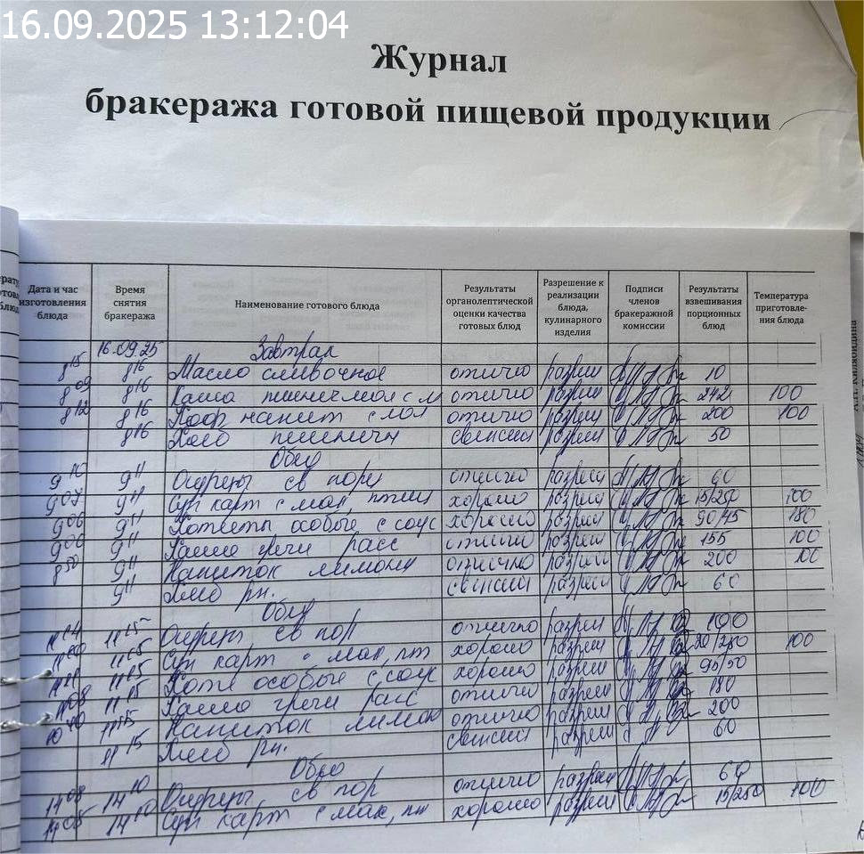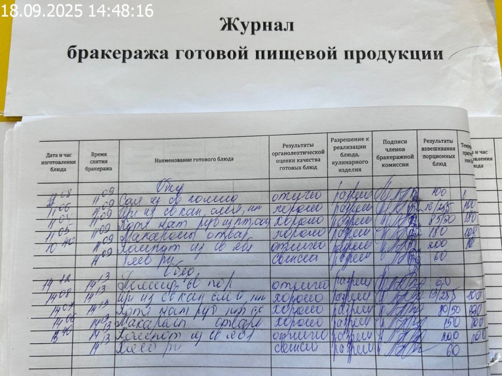 Журнал бракеража готовой пищевой продукции