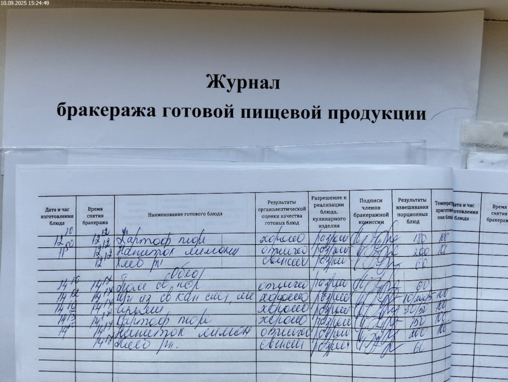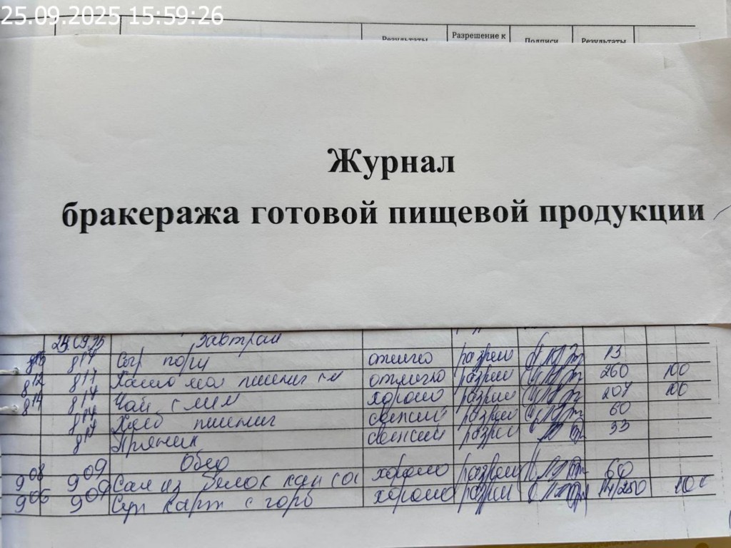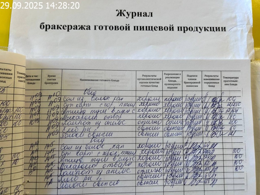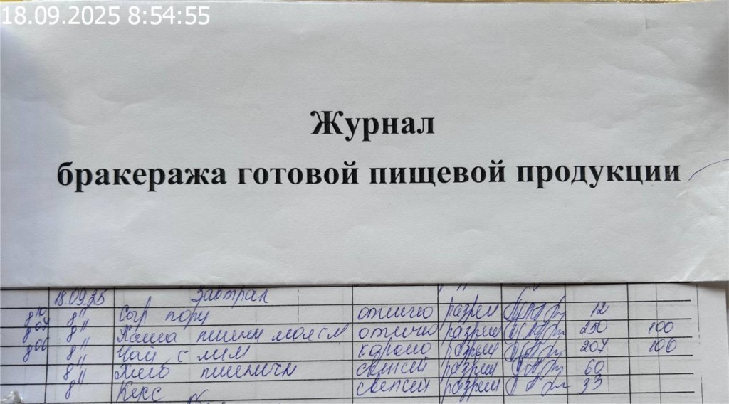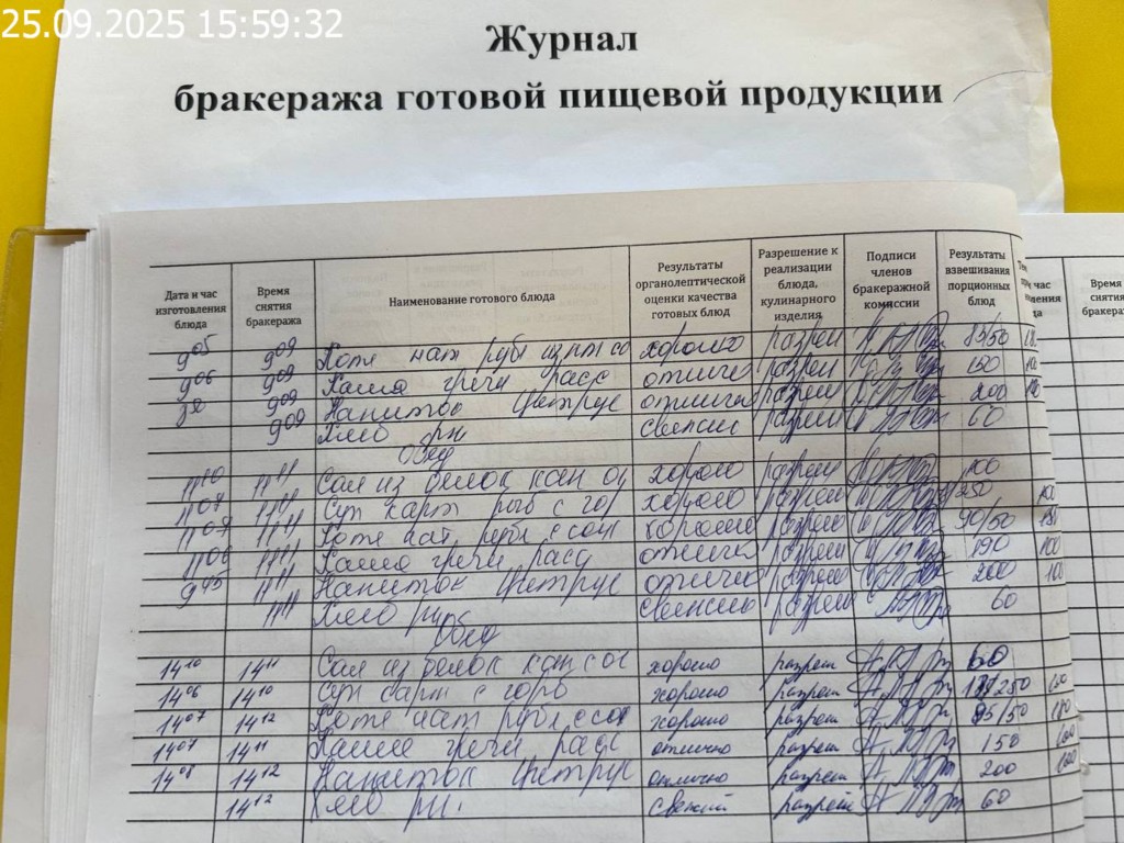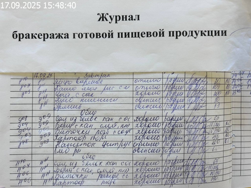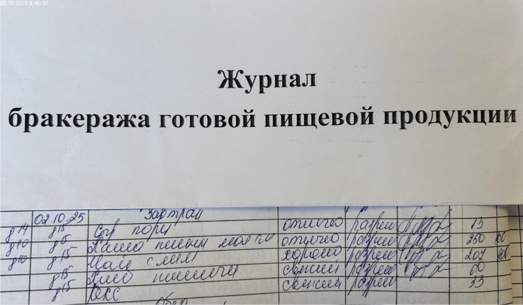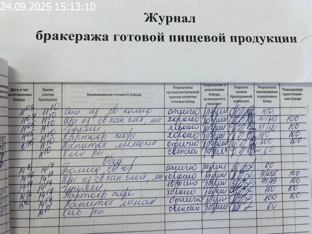 Журнал бракеража готовой пищевой продукции