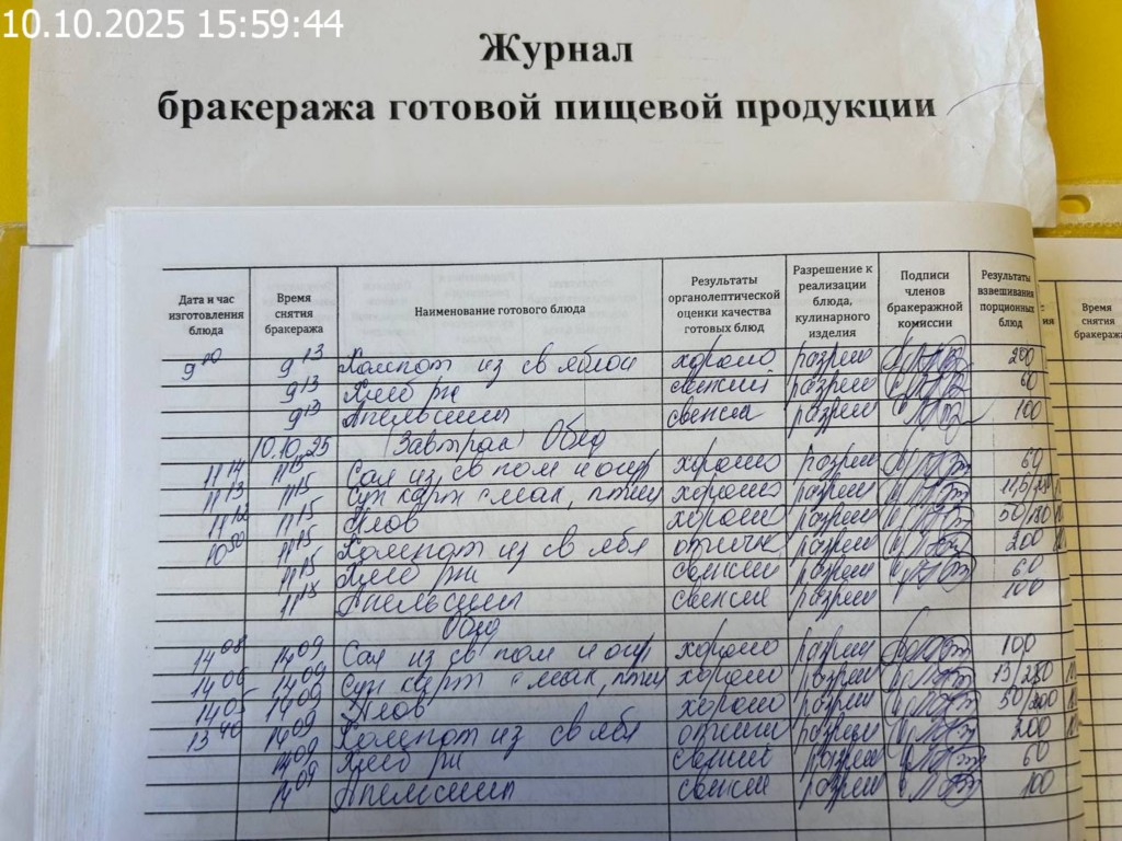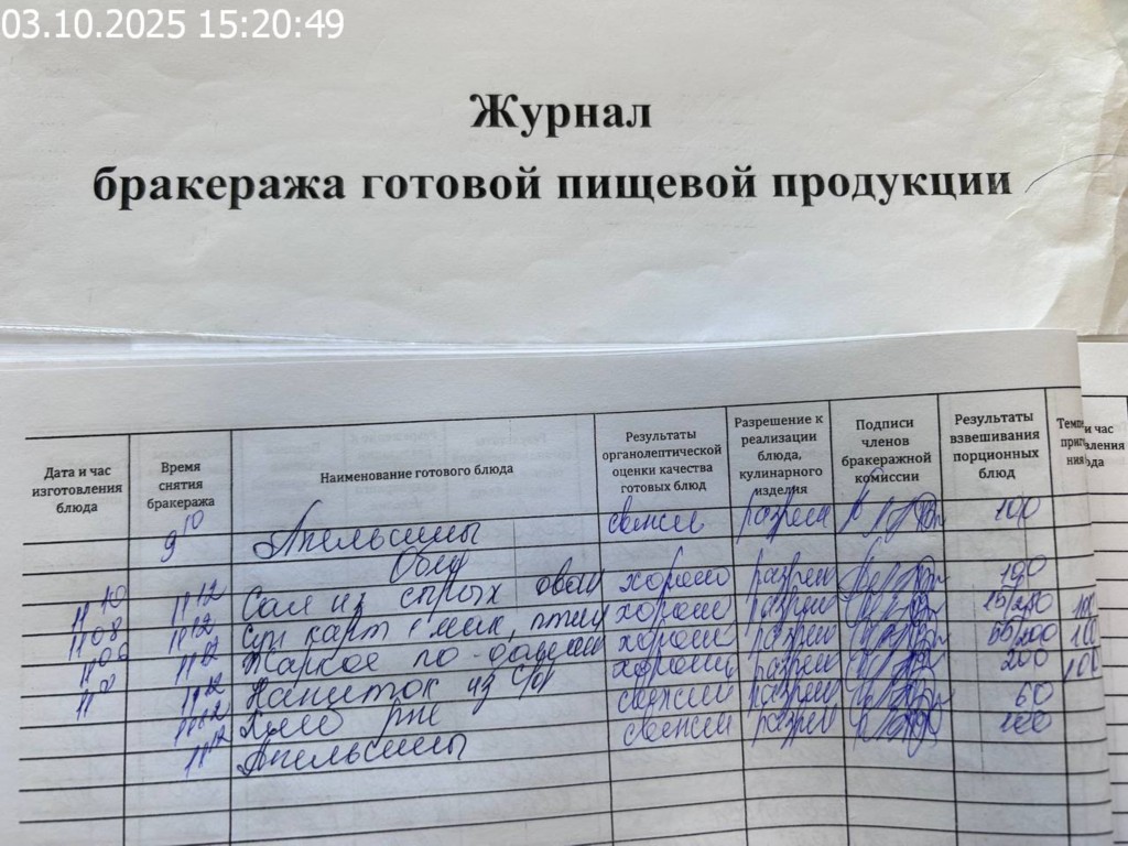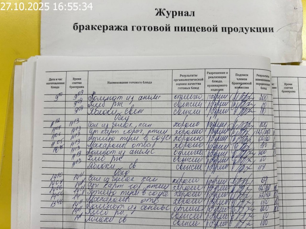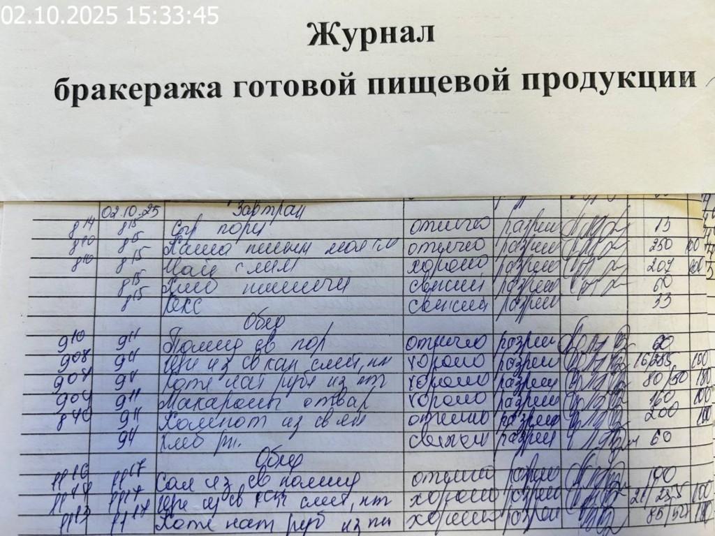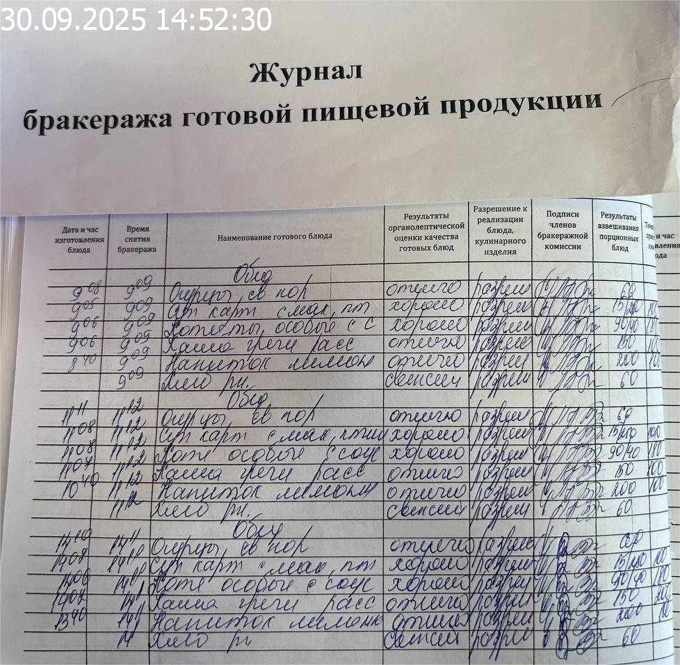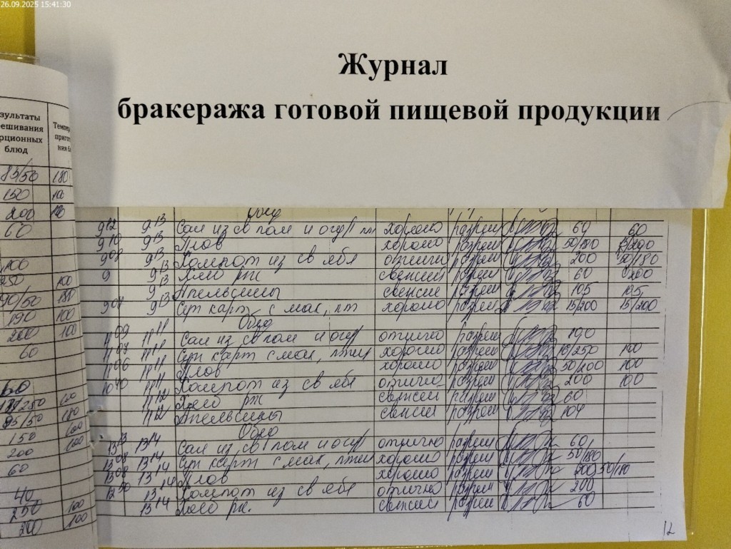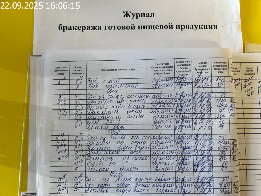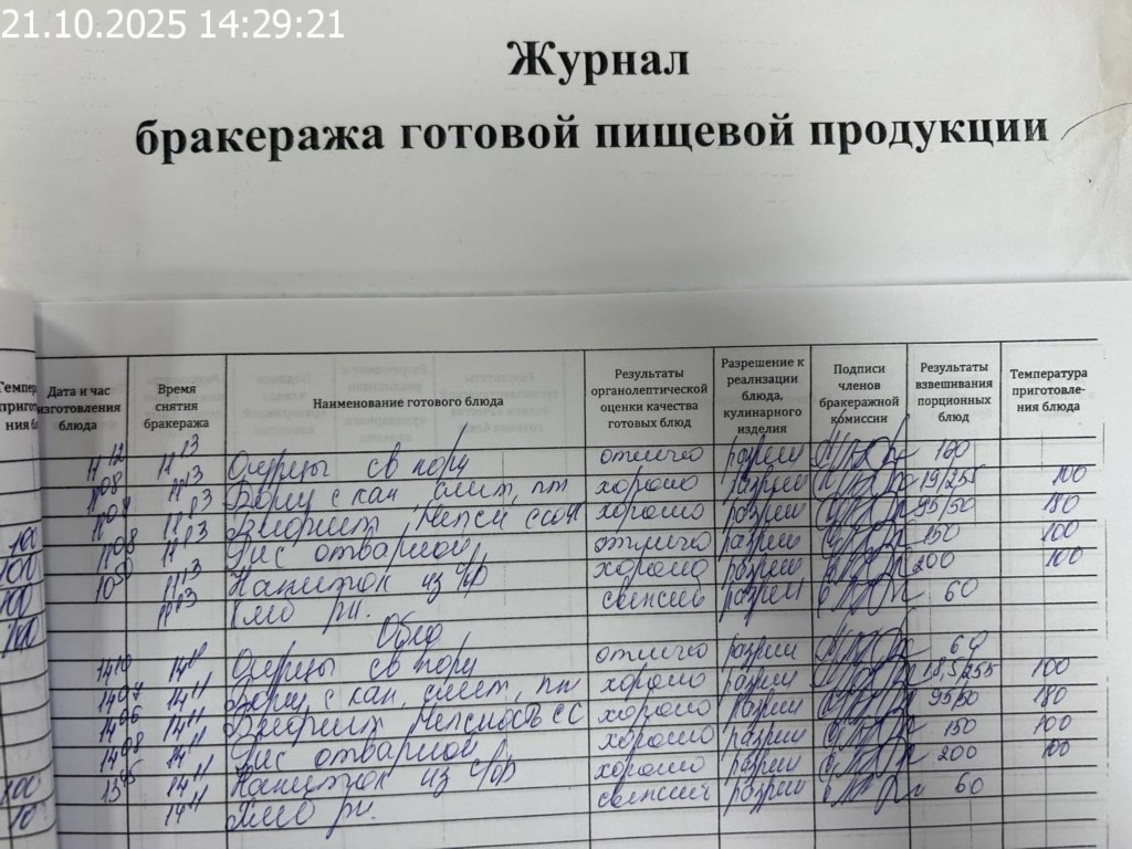 Журнал бракеража готовой пищевой продукции
