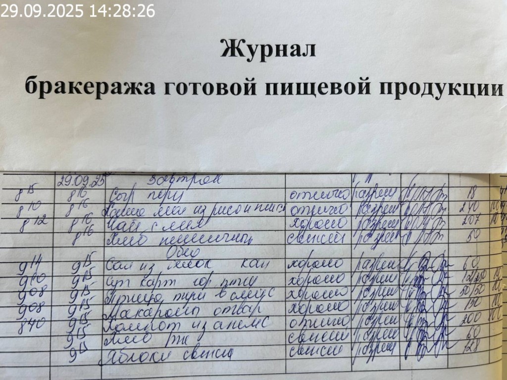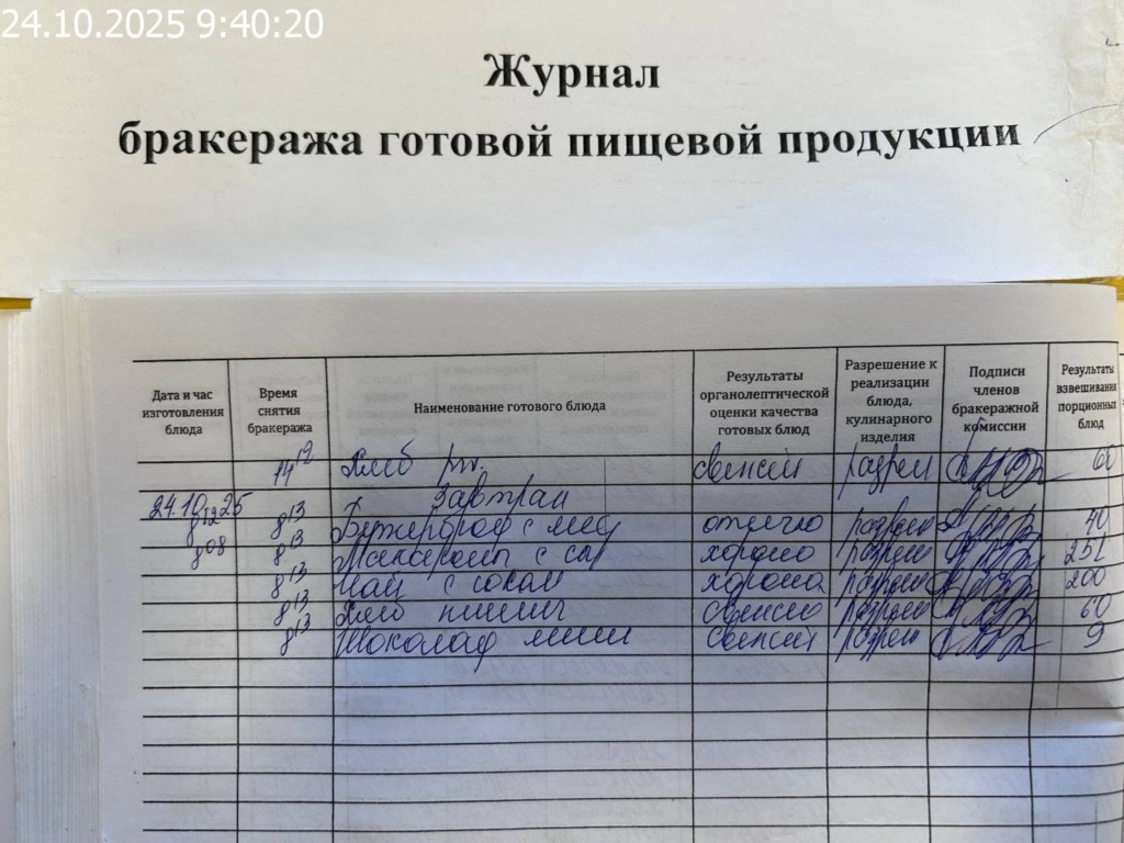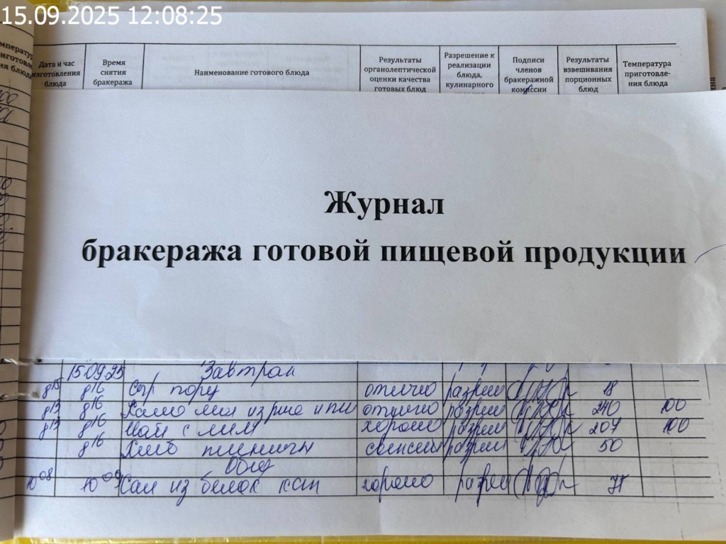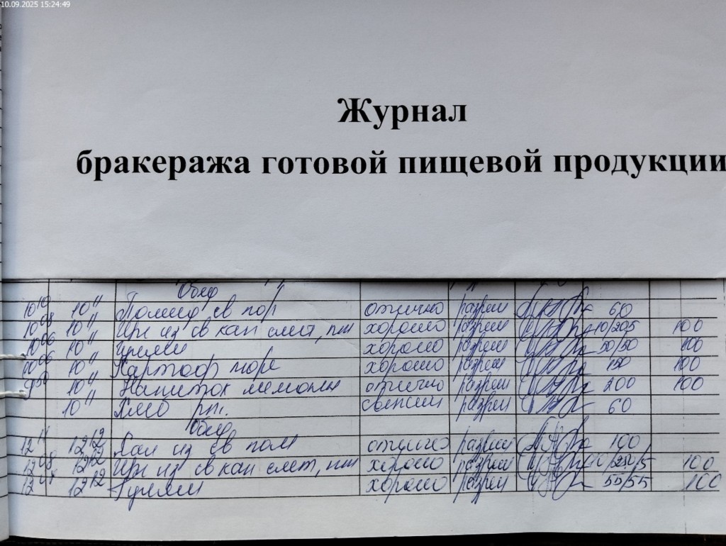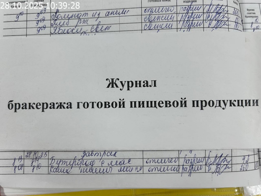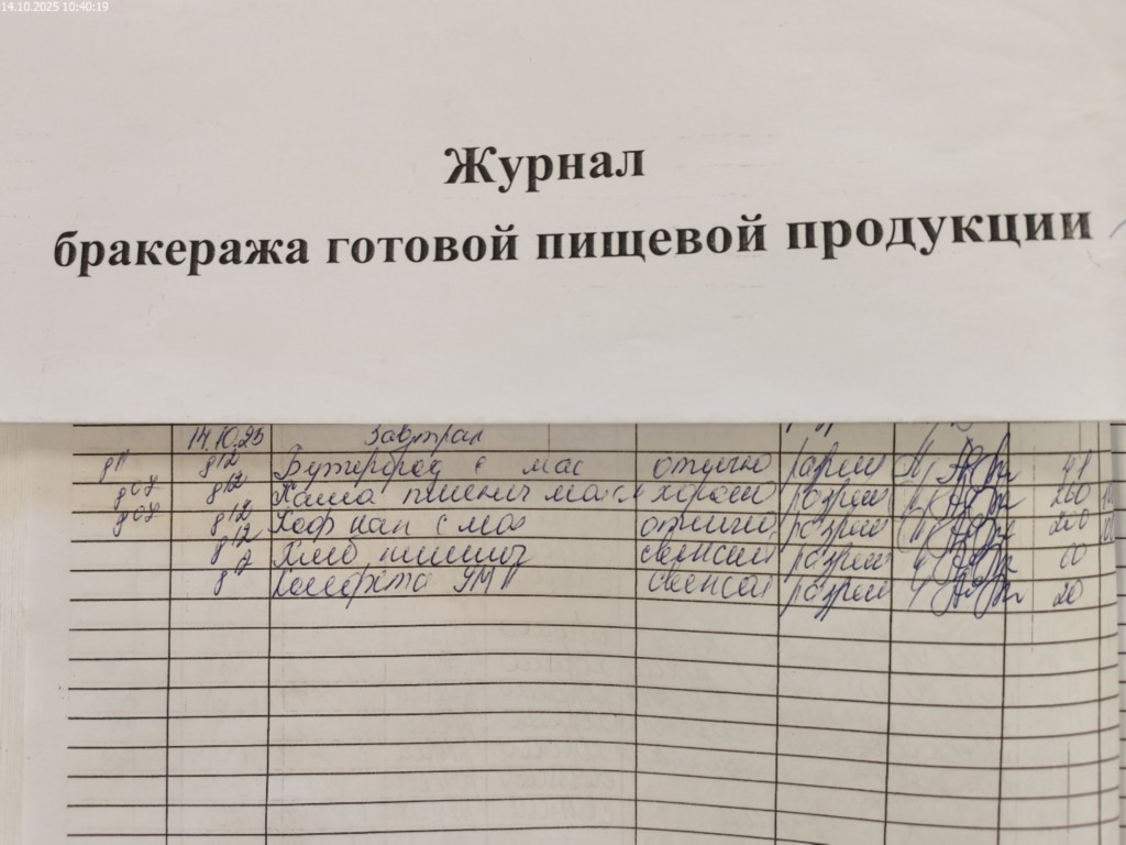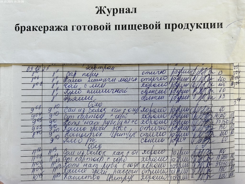 Журнал бракеража готовой пищевой продукции