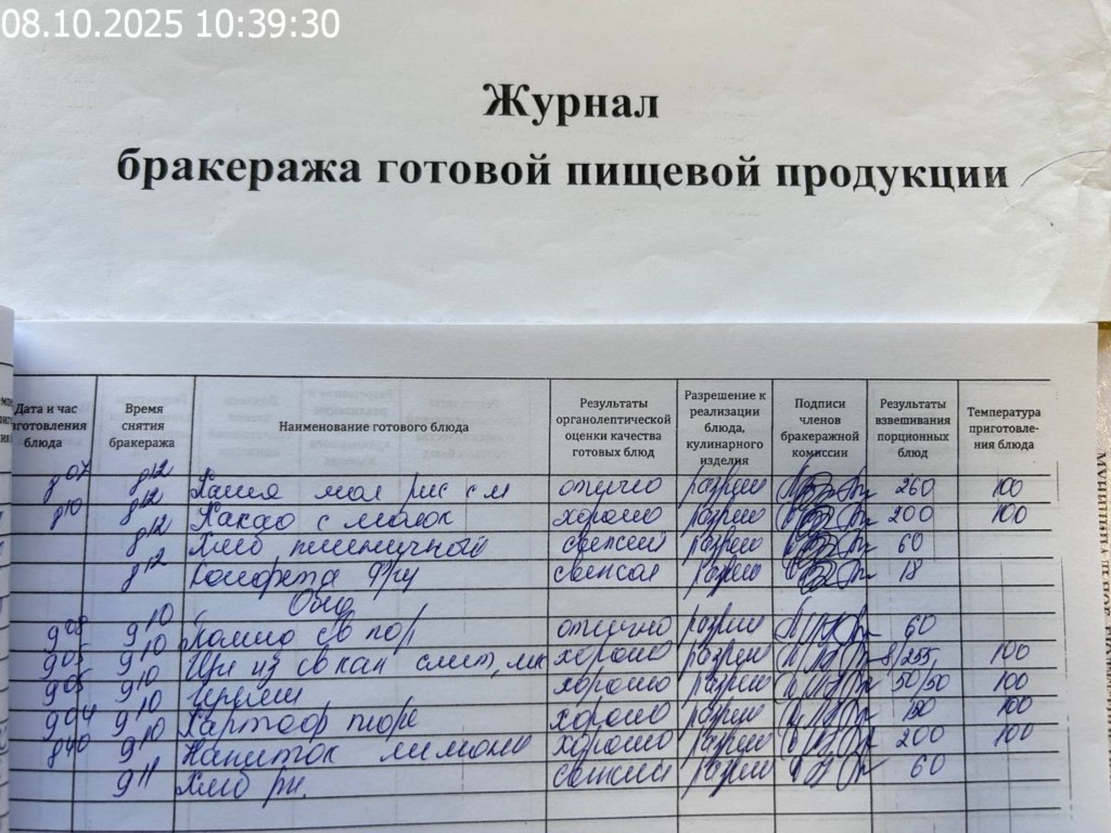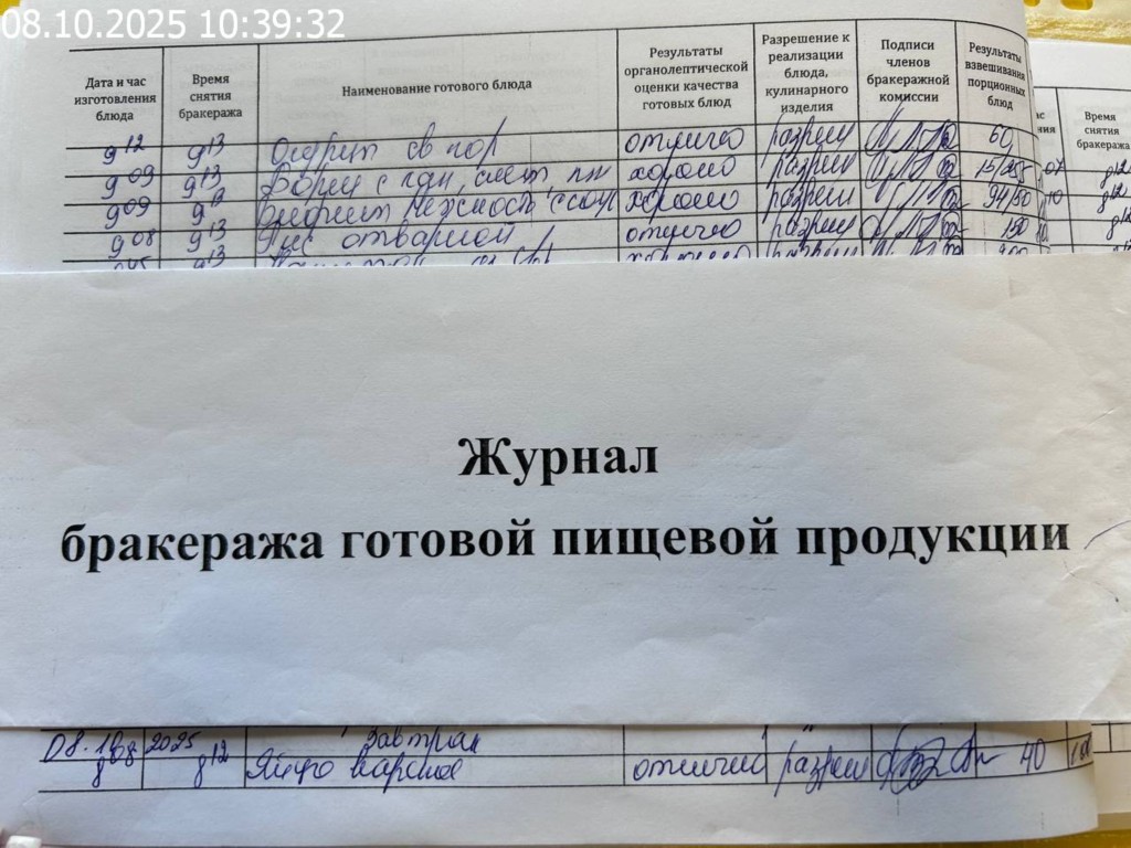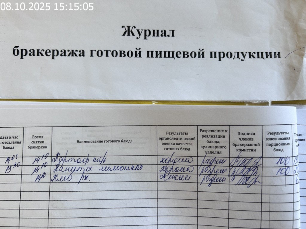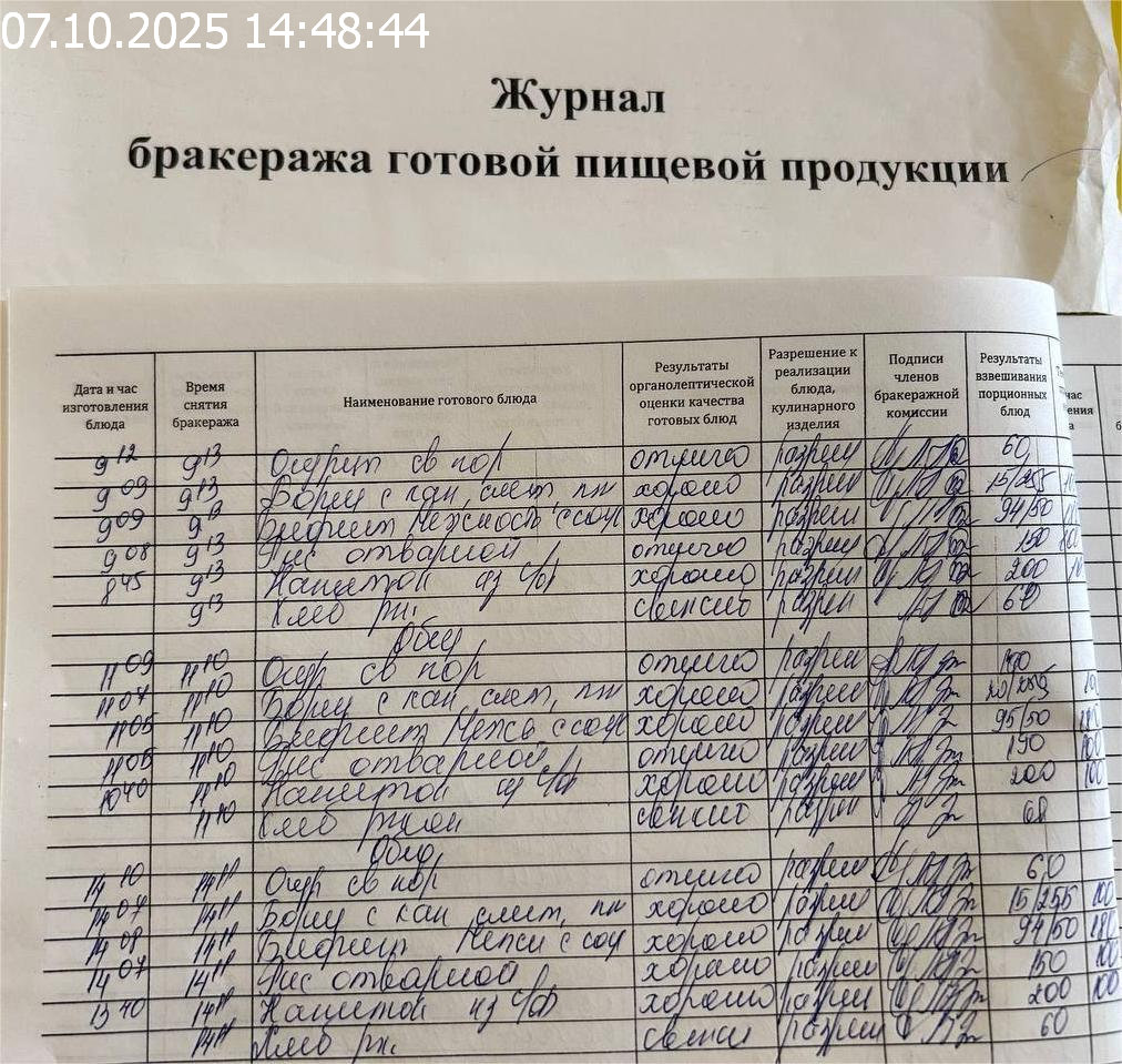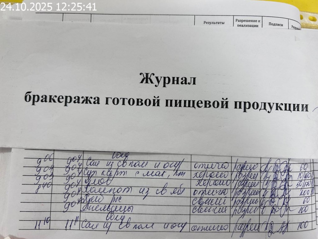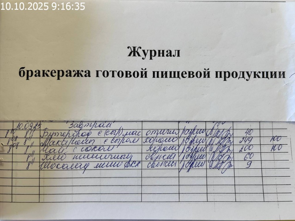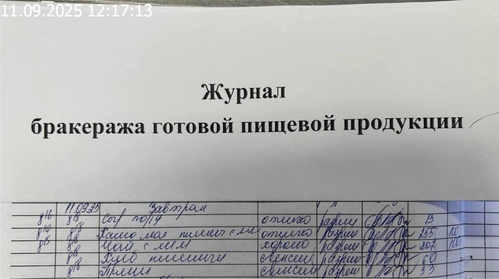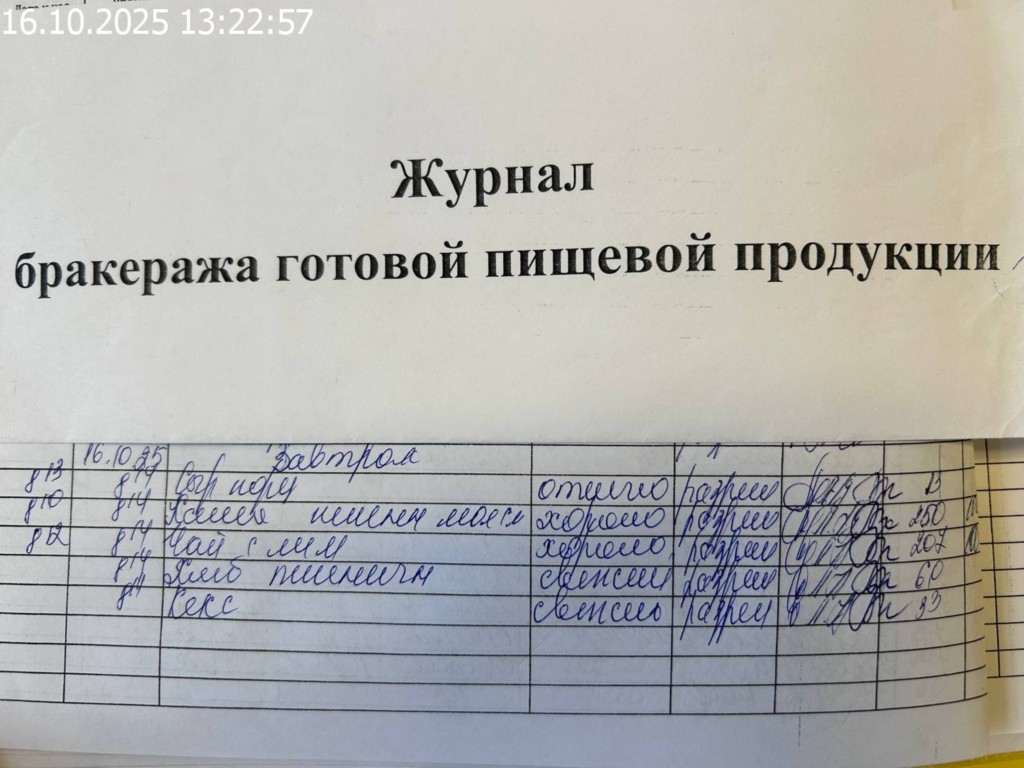 Журнал бракеража готовой пищевой продукции