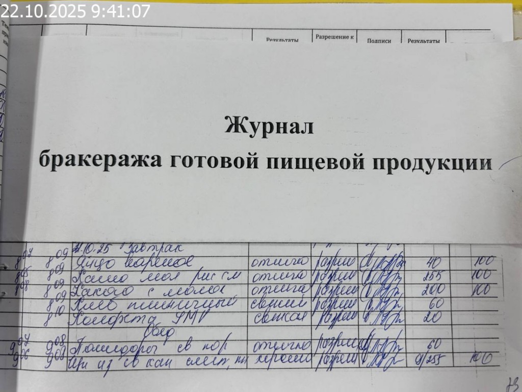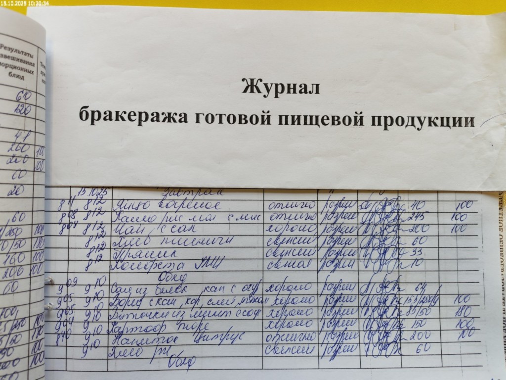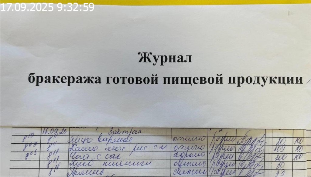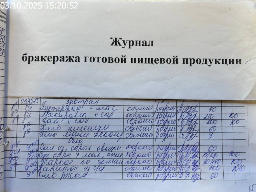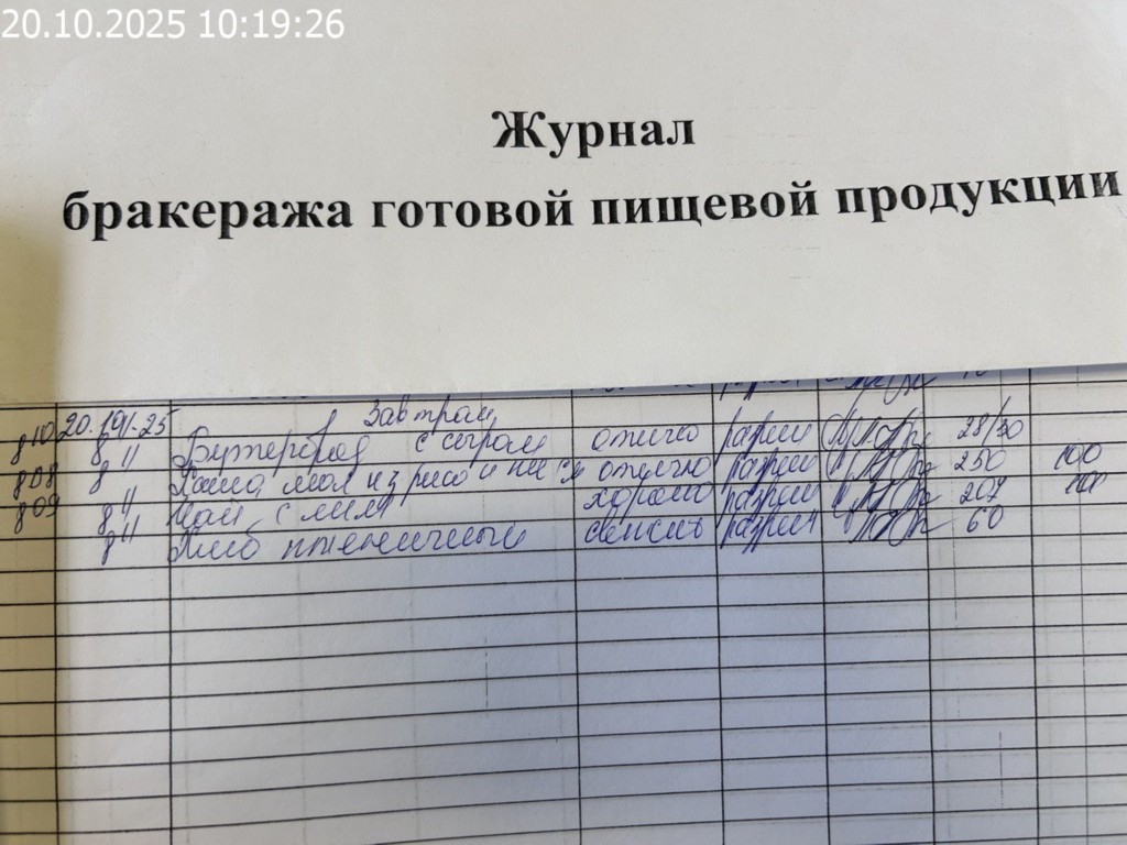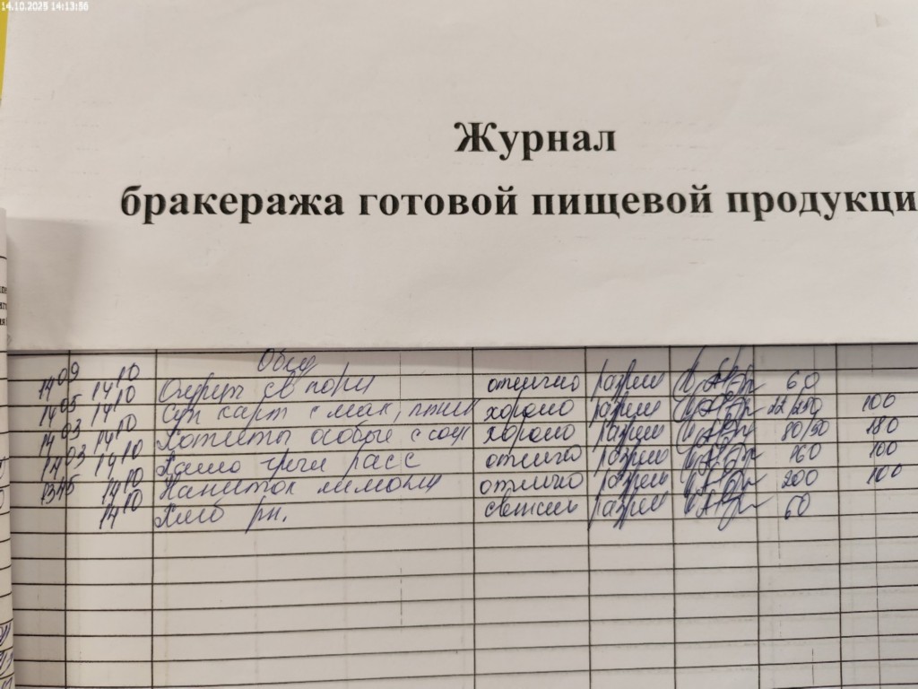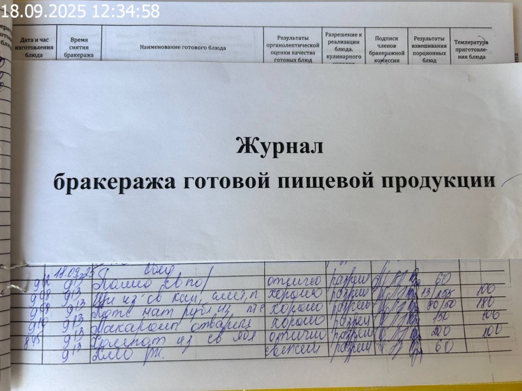 Журнал бракеража готовой пищевой продукции