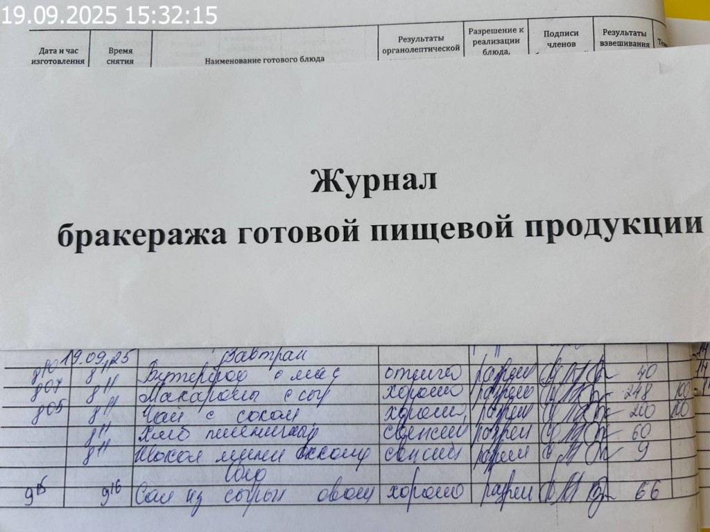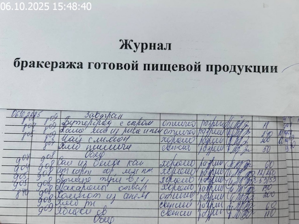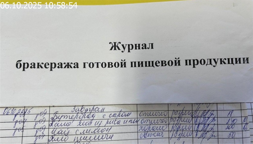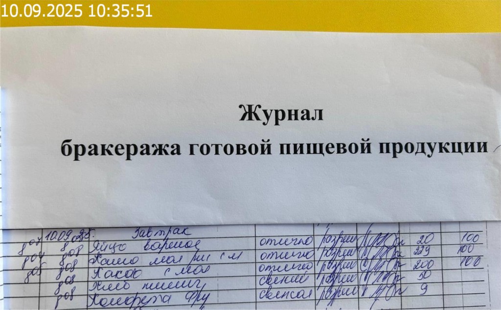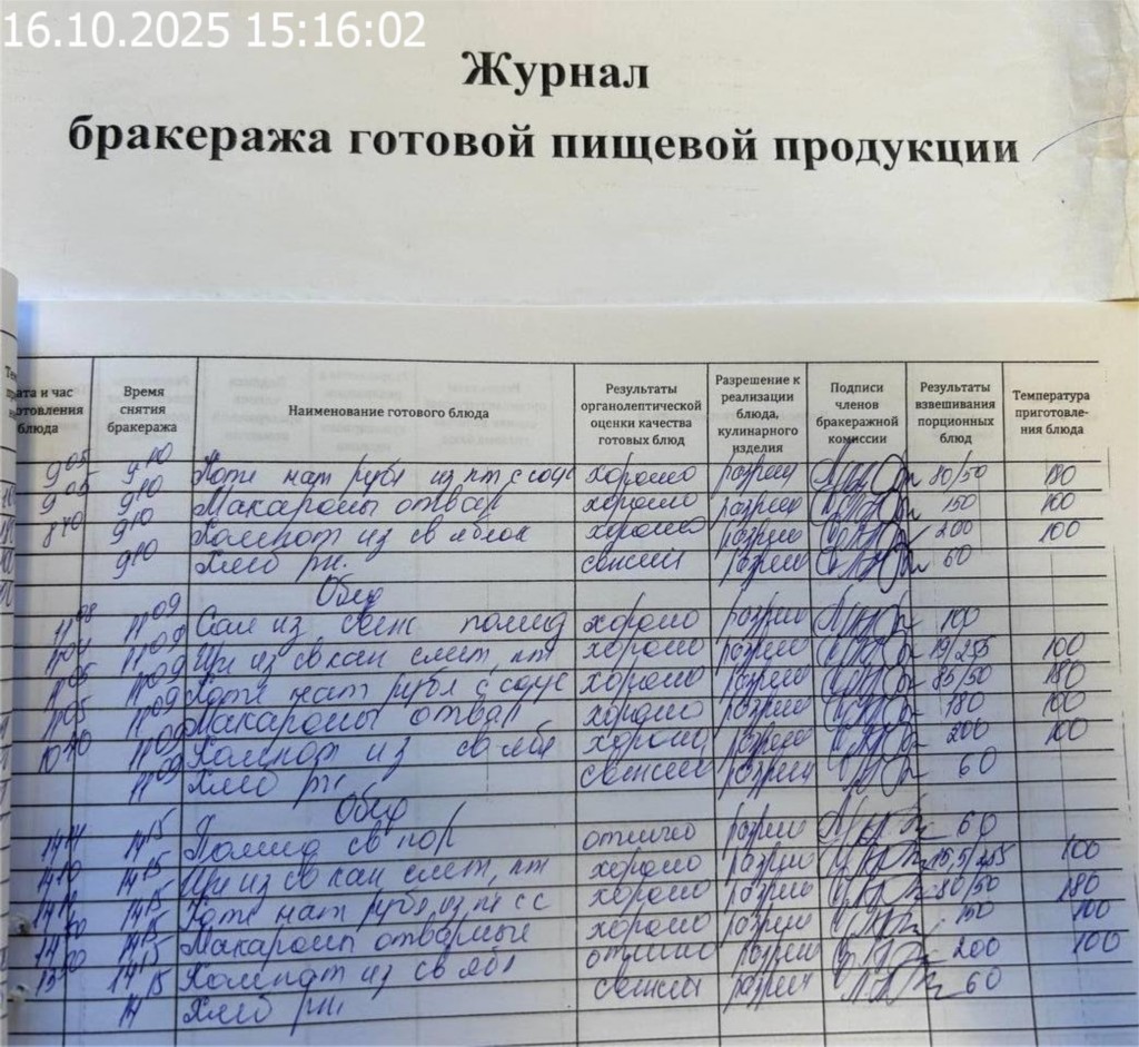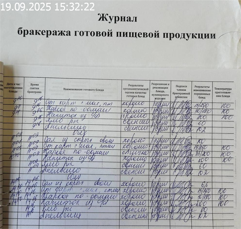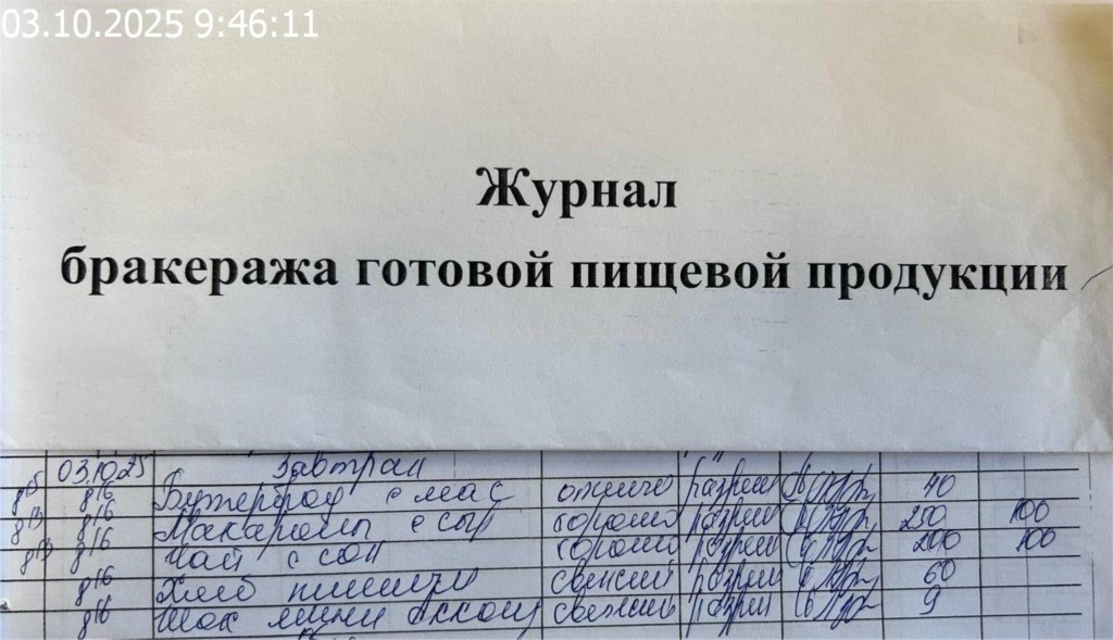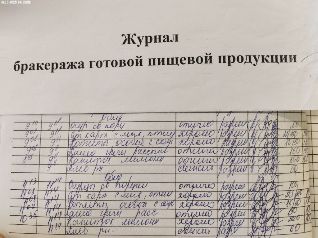 Журнал бракеража готовой пищевой продукции