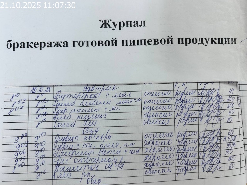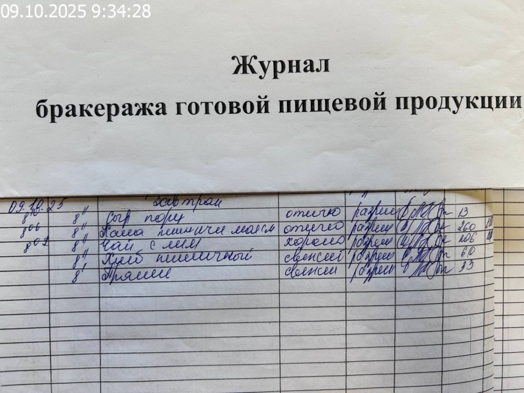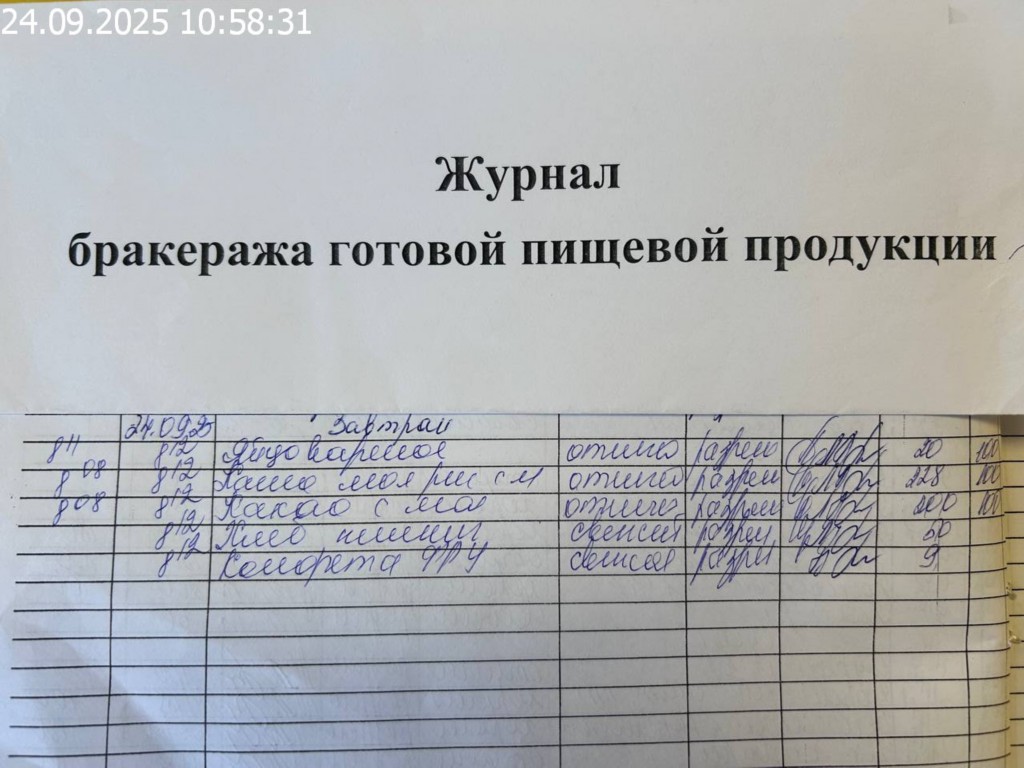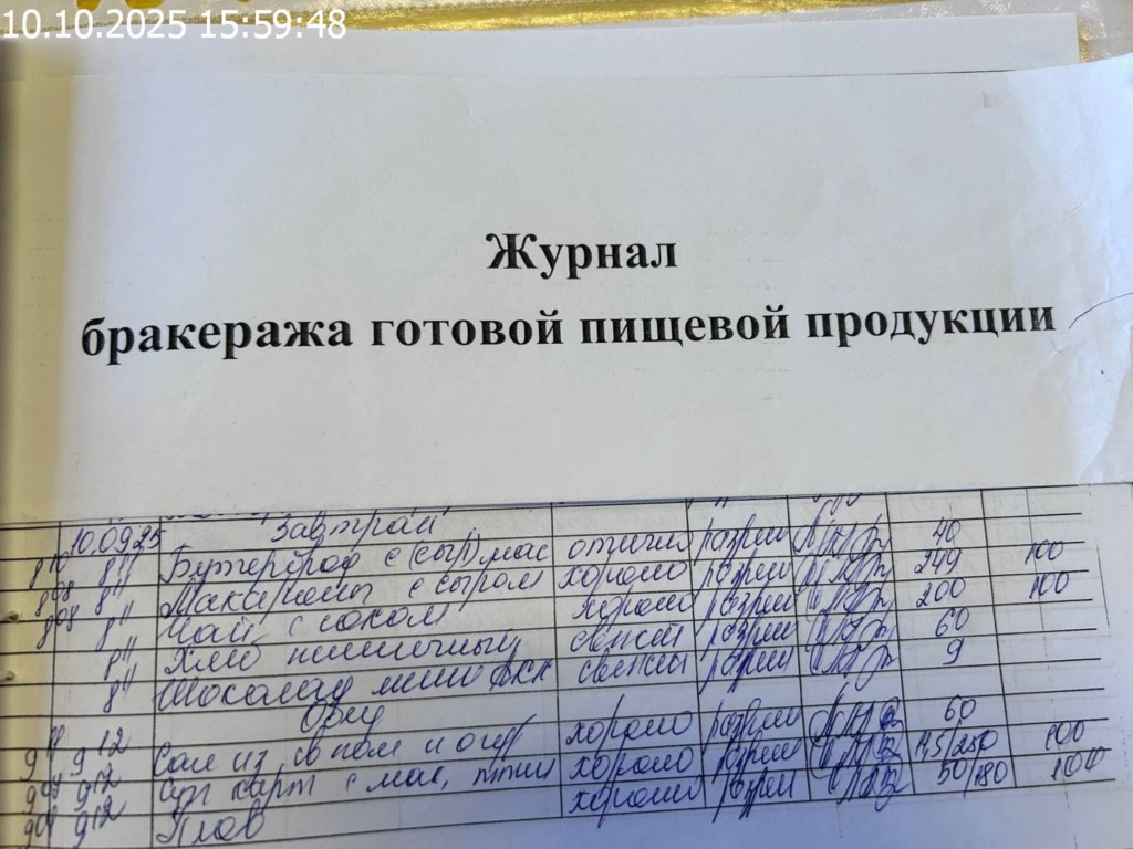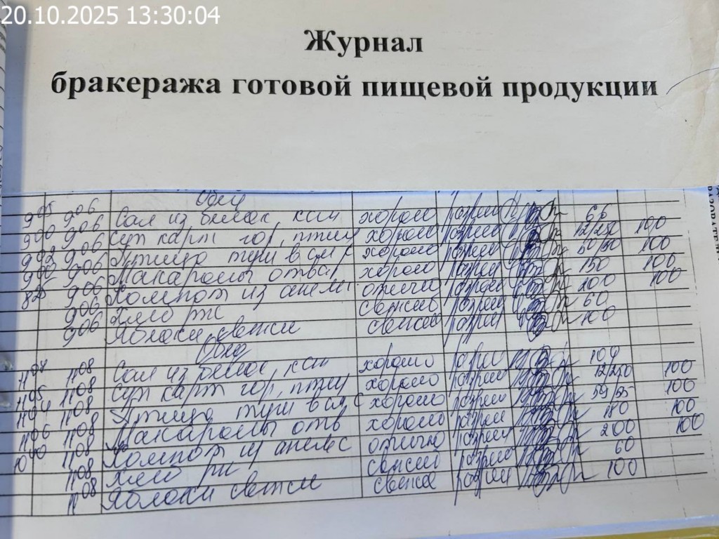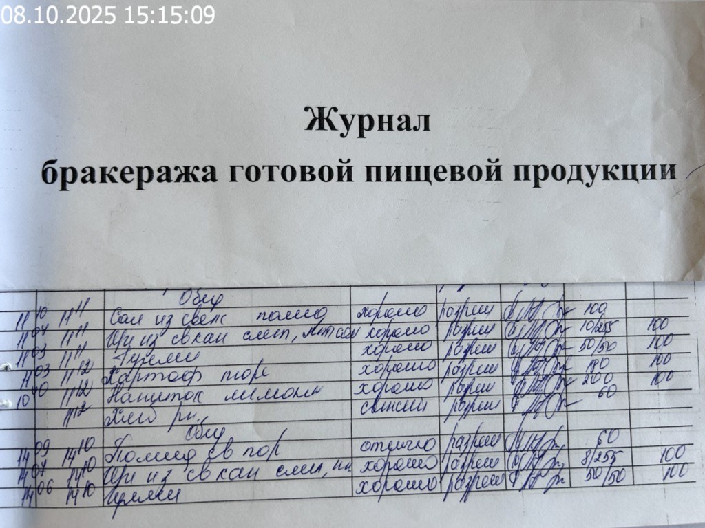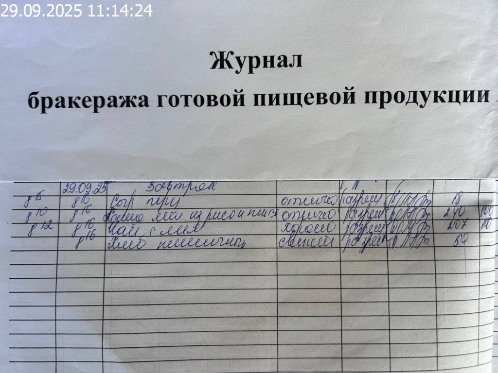 Журнал бракеража готовой пищевой продукции