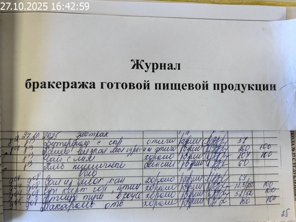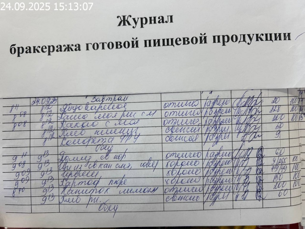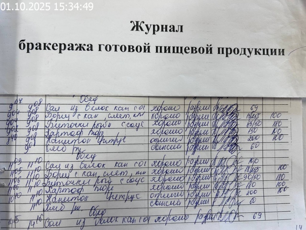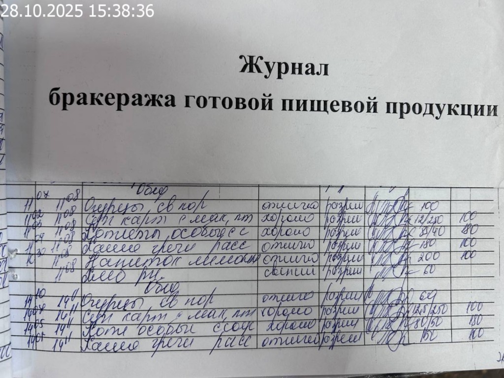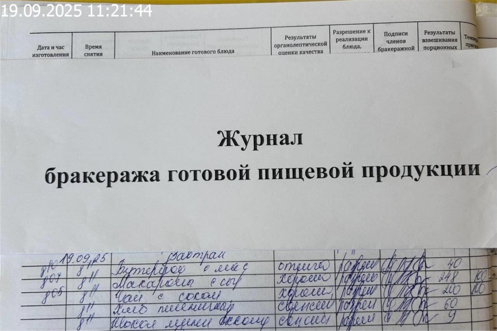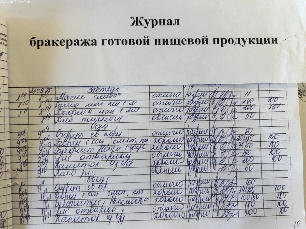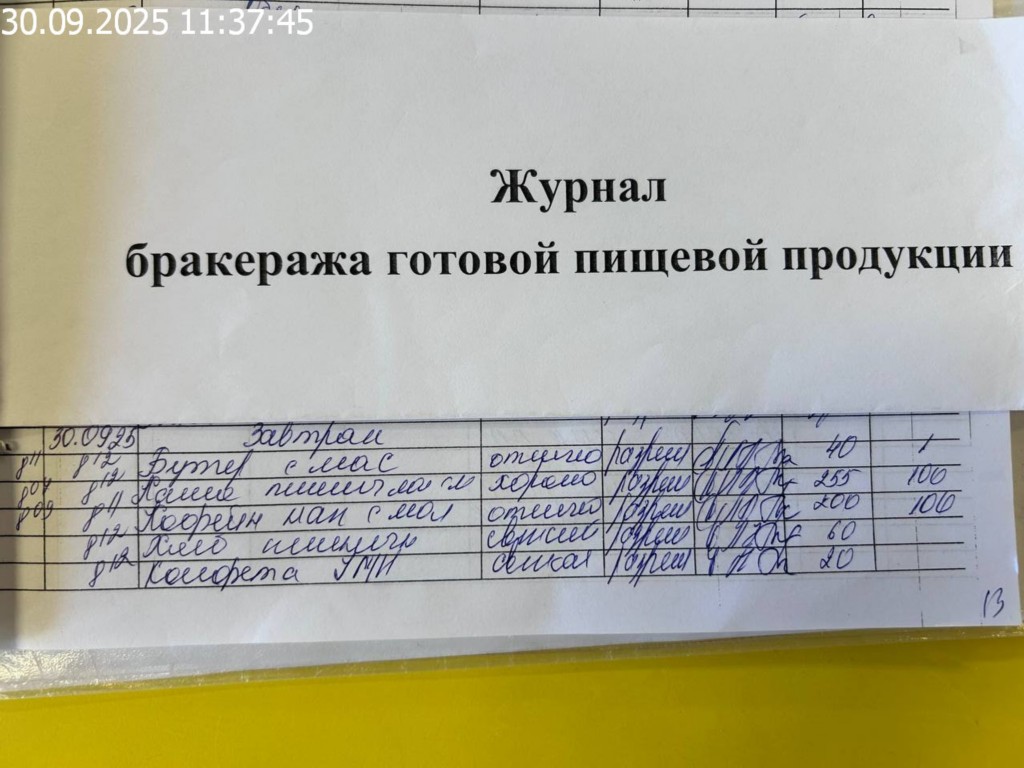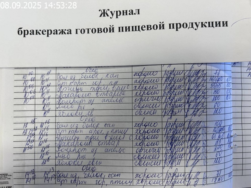 Журнал бракеража готовой пищевой продукции