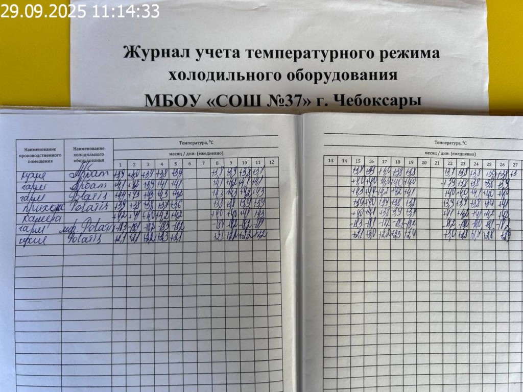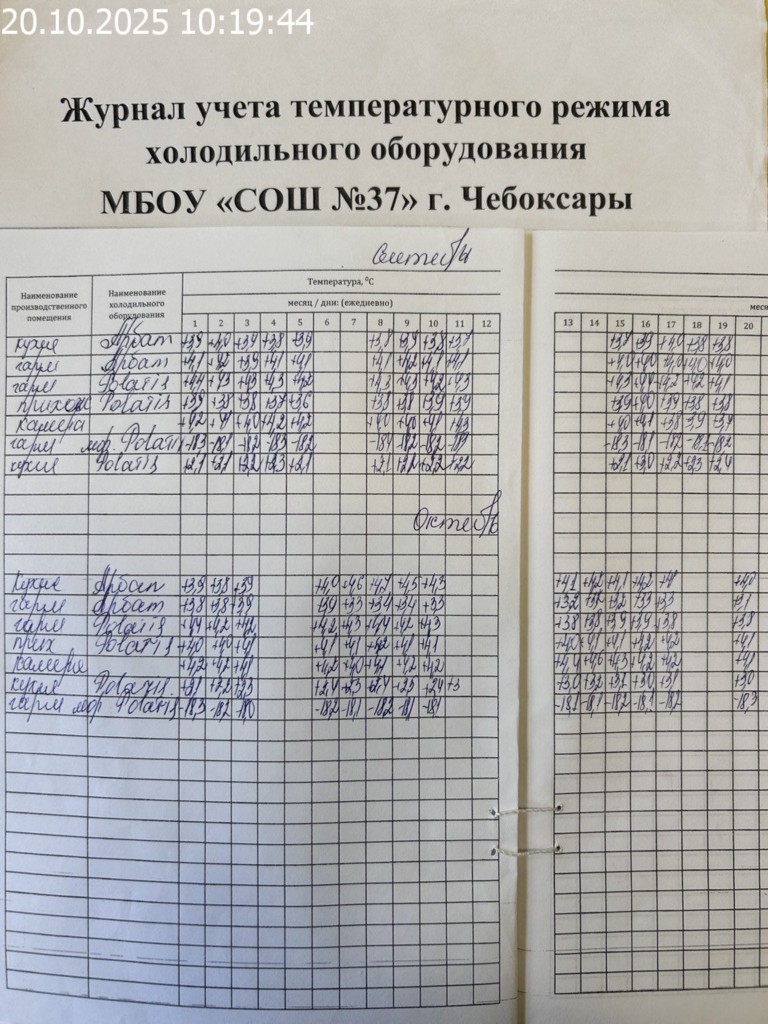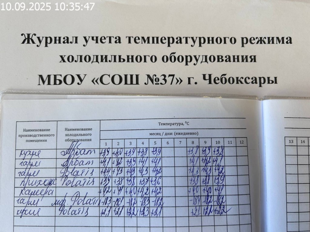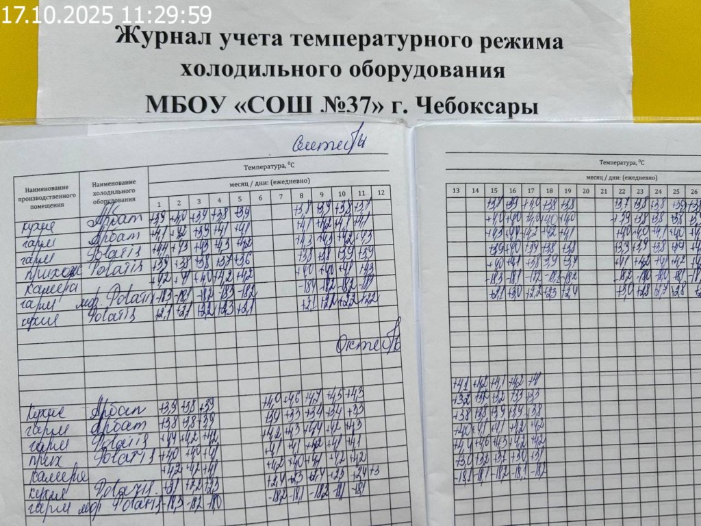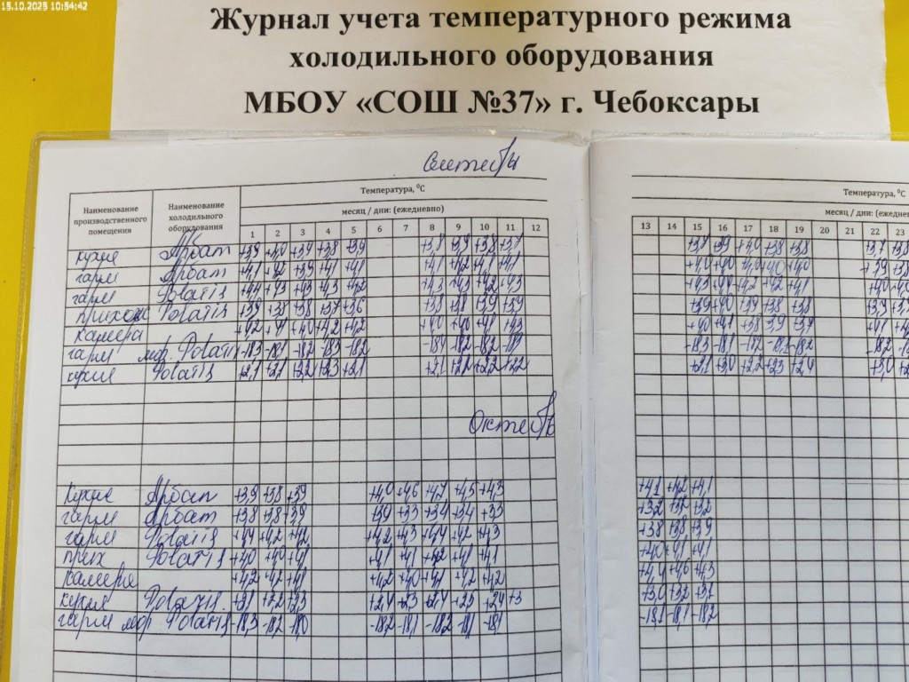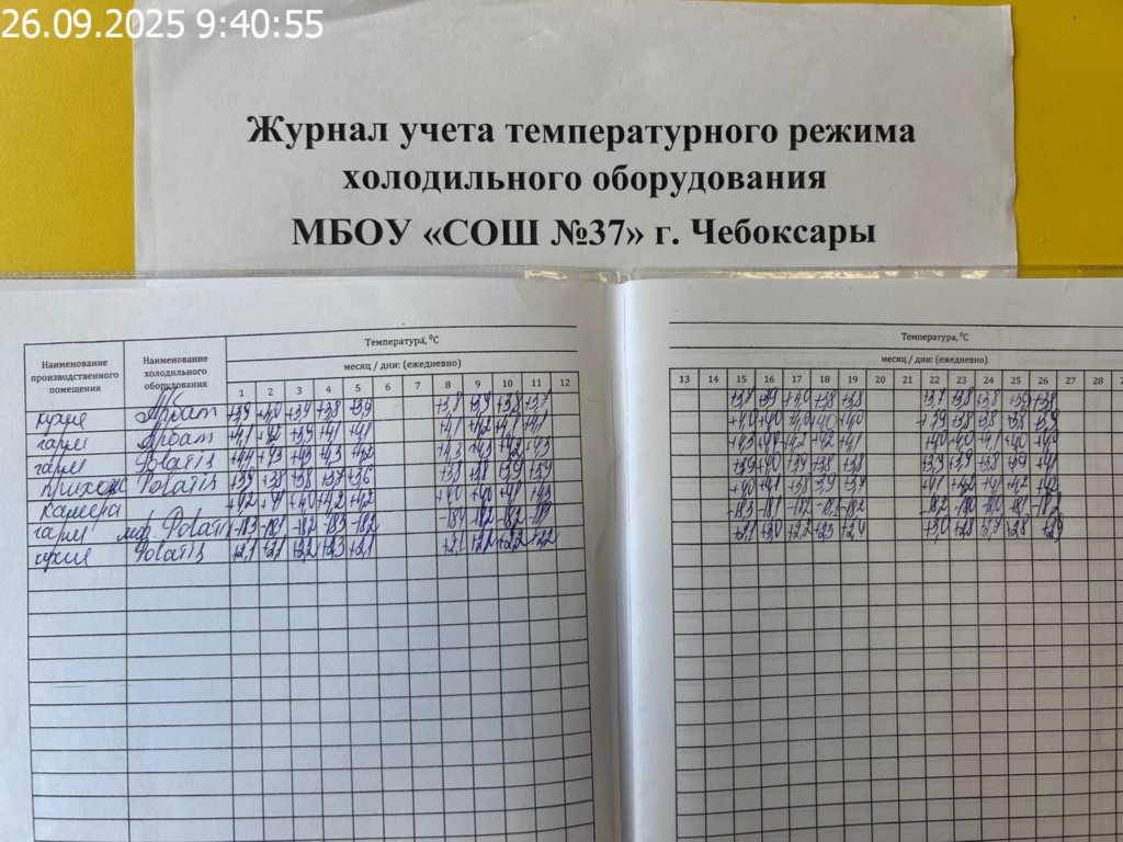 Журнал учета температурного режима холодильного оборудования |