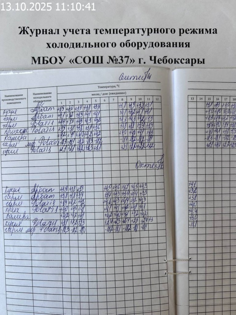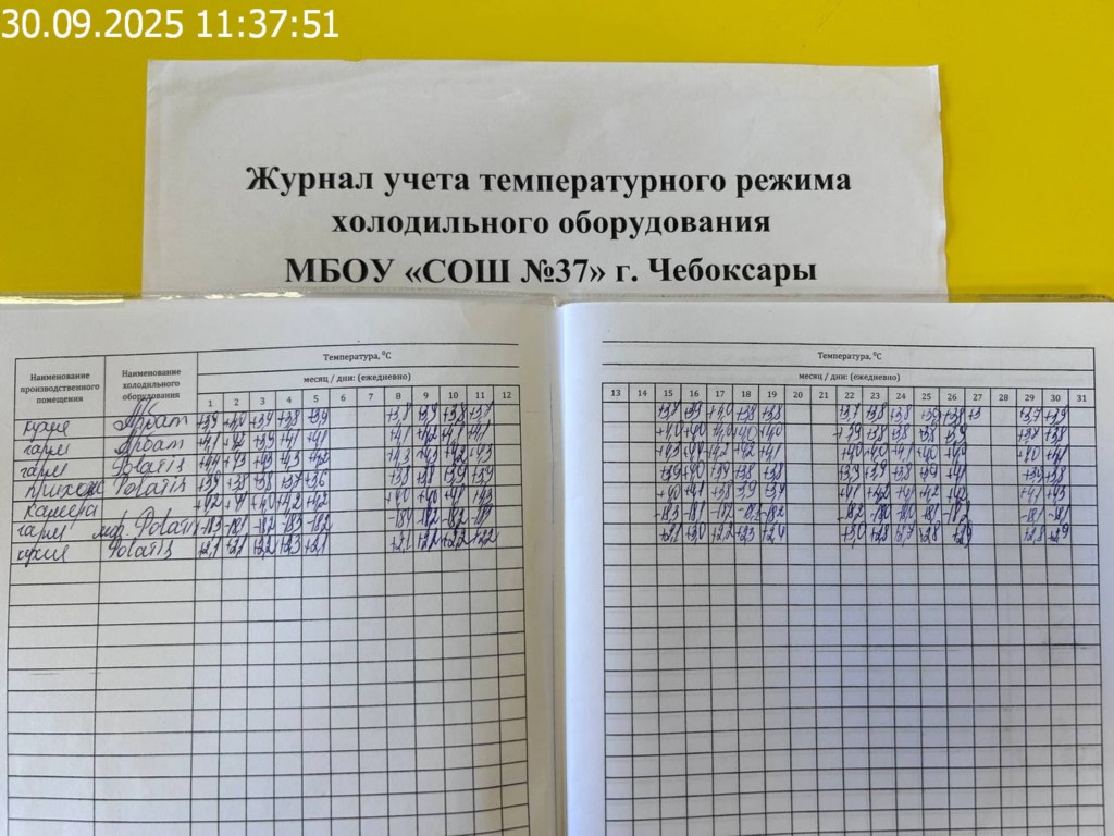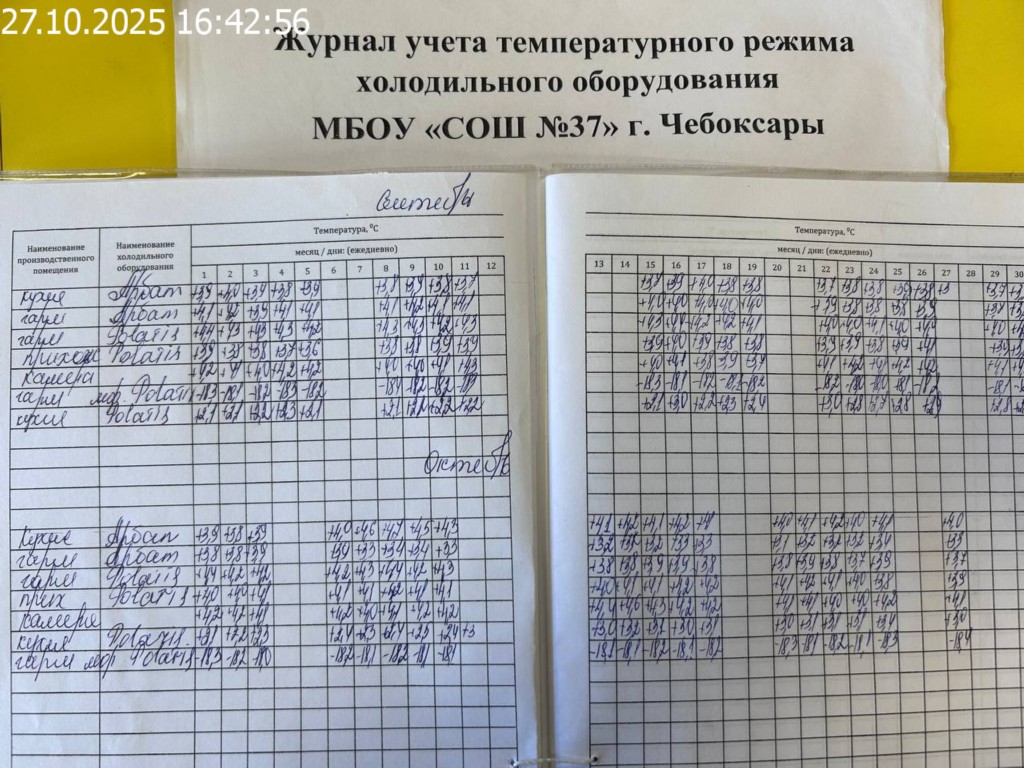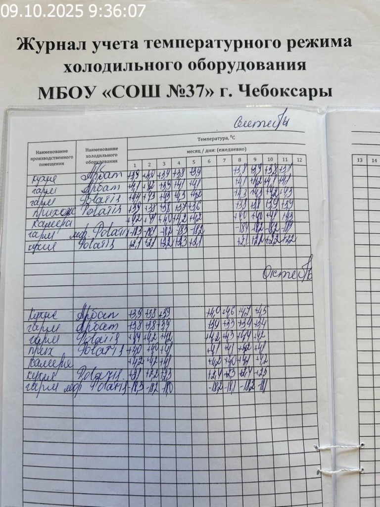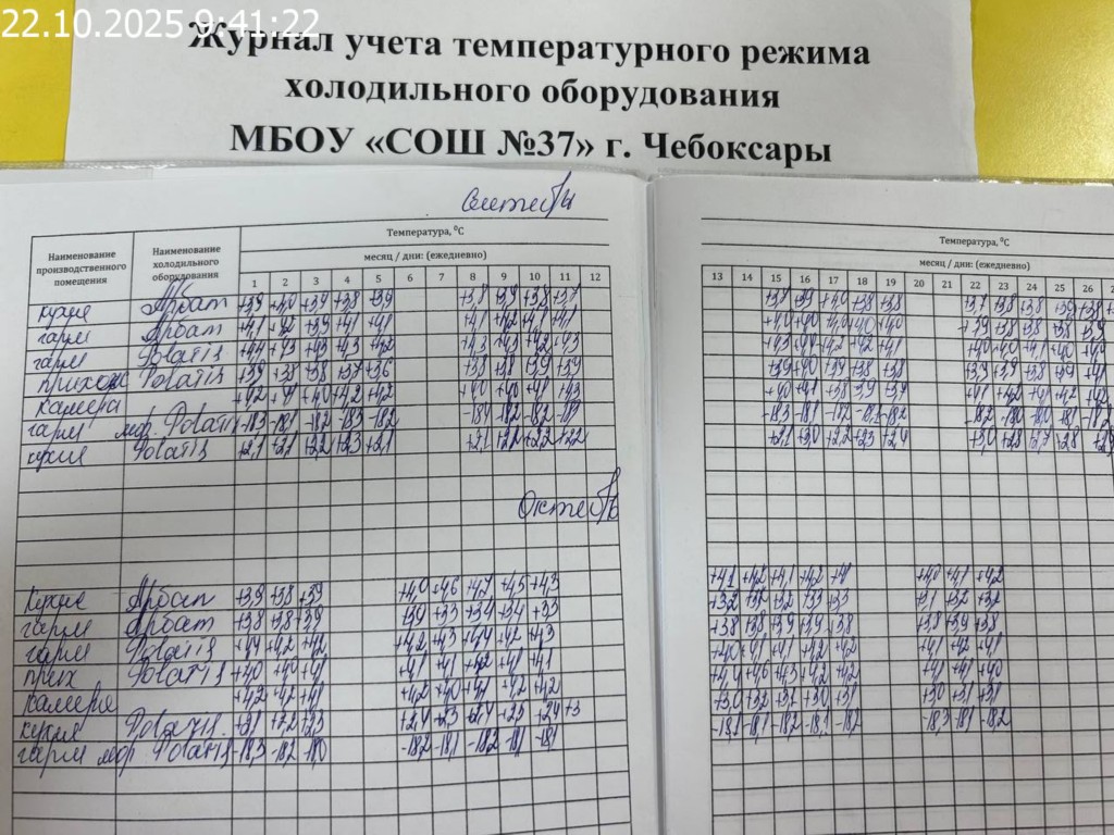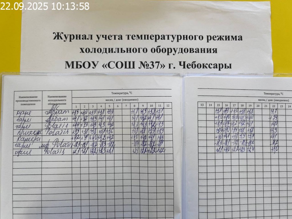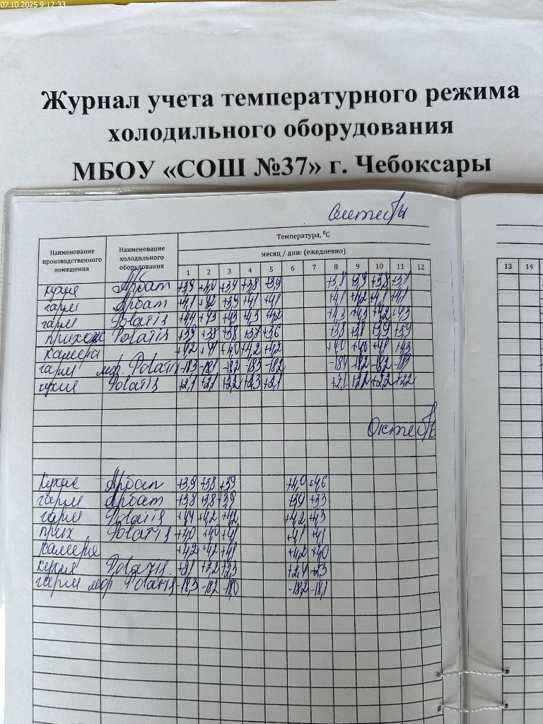 Журнал учета температурного режима холодильного оборудования |
