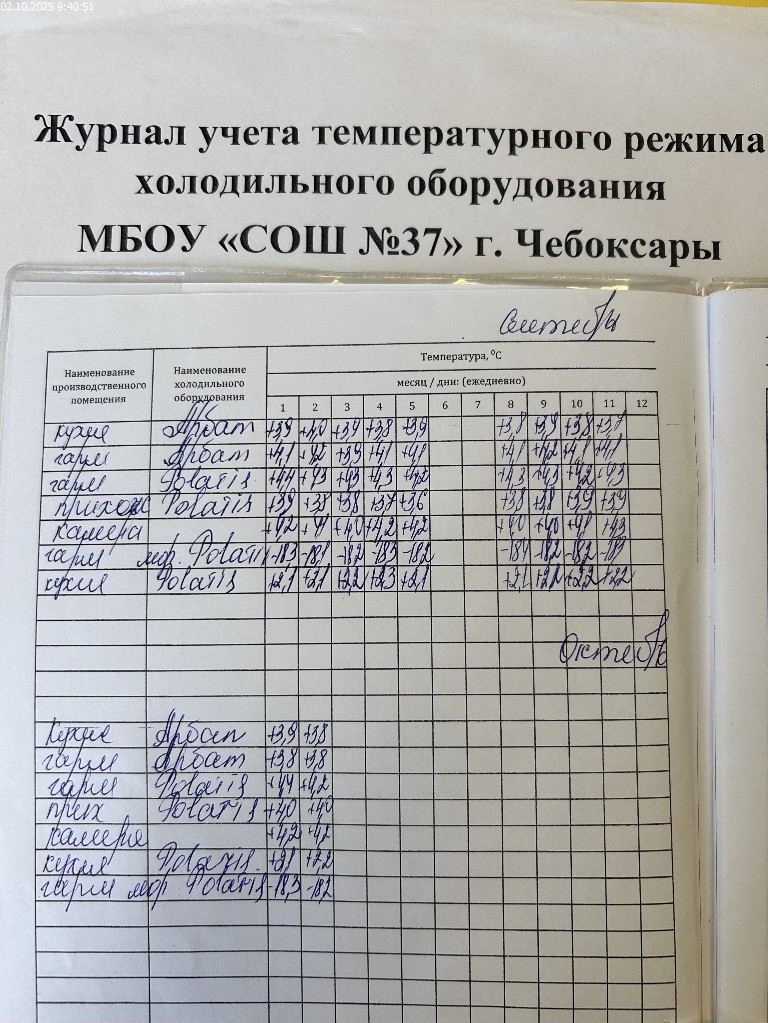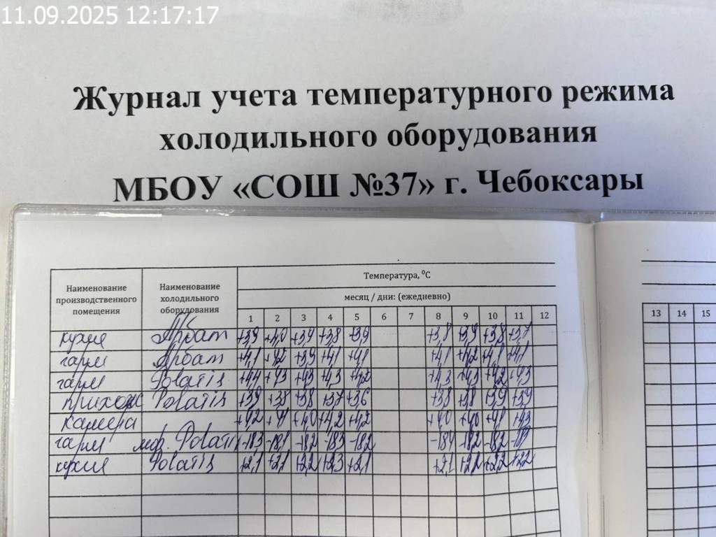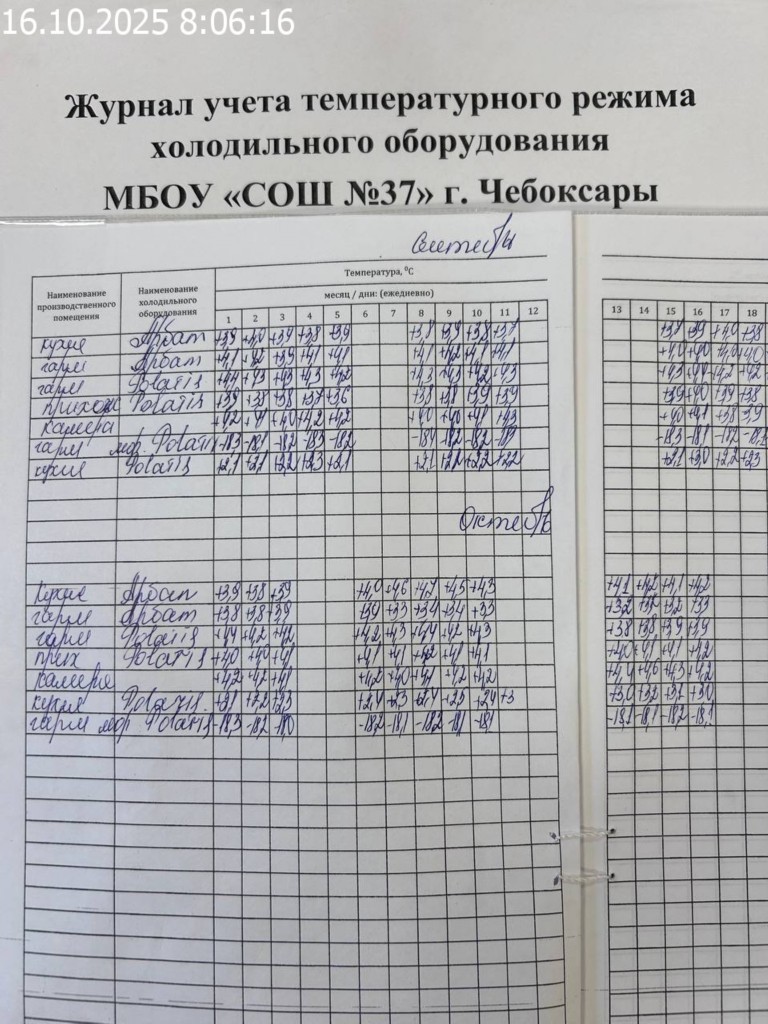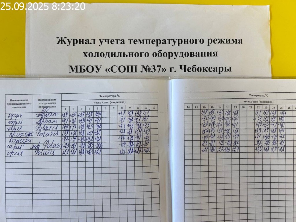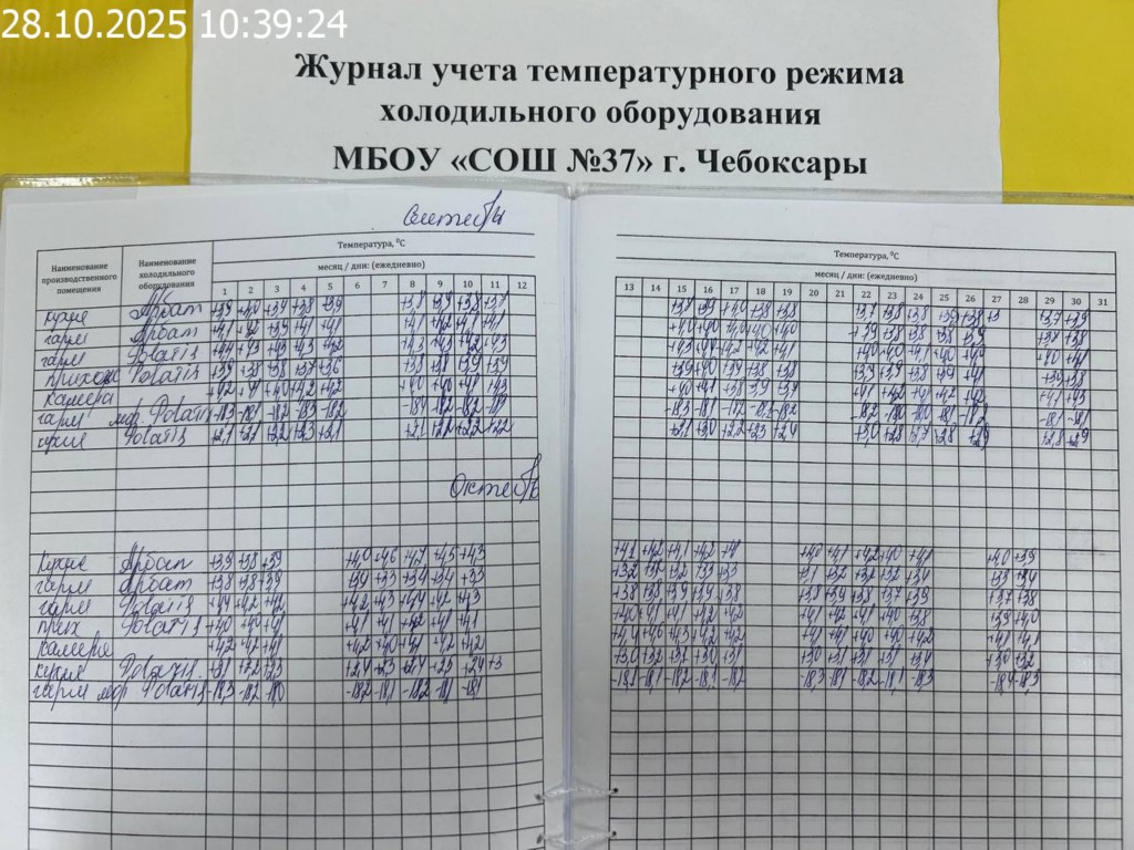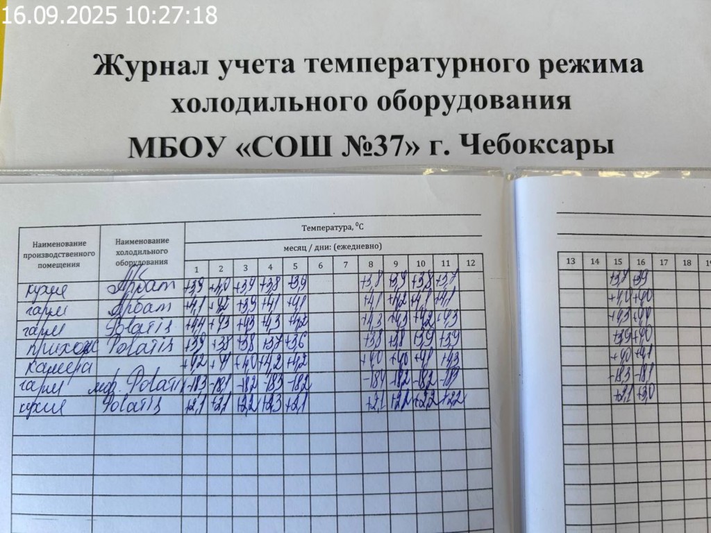 Журнал учета температурного режима холодильного оборудования |