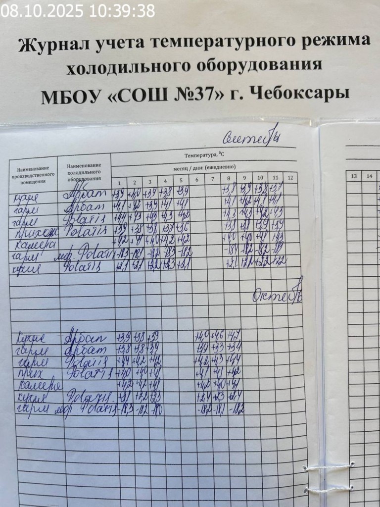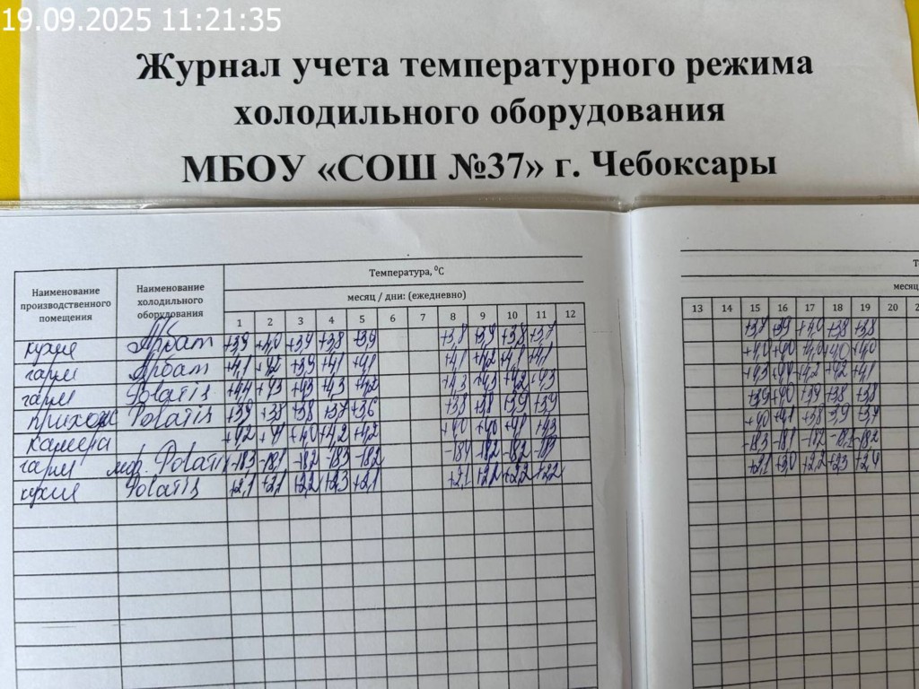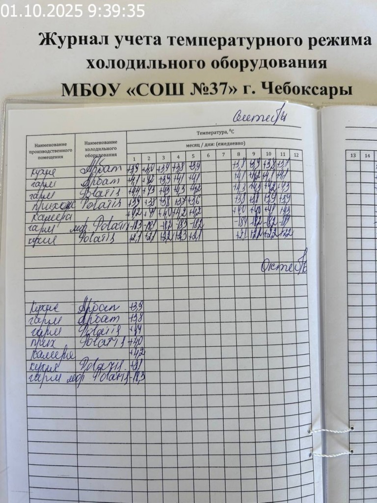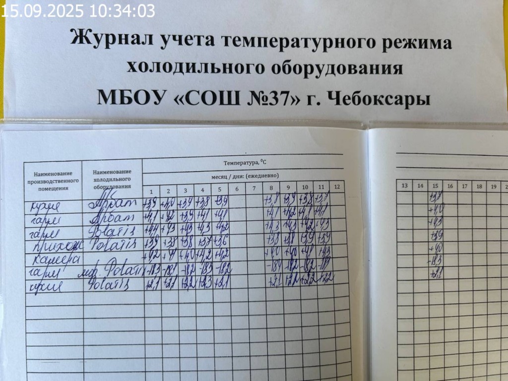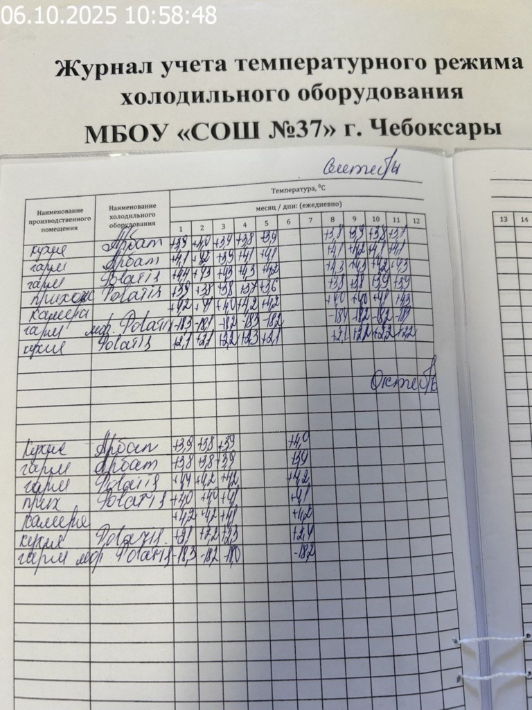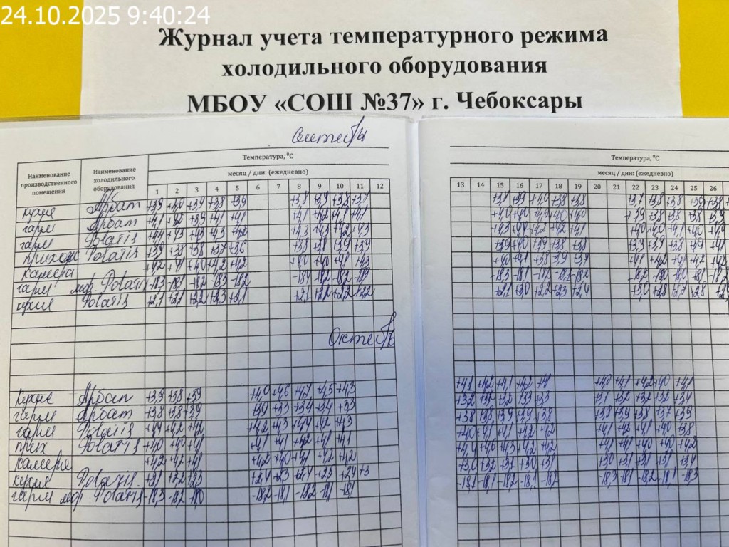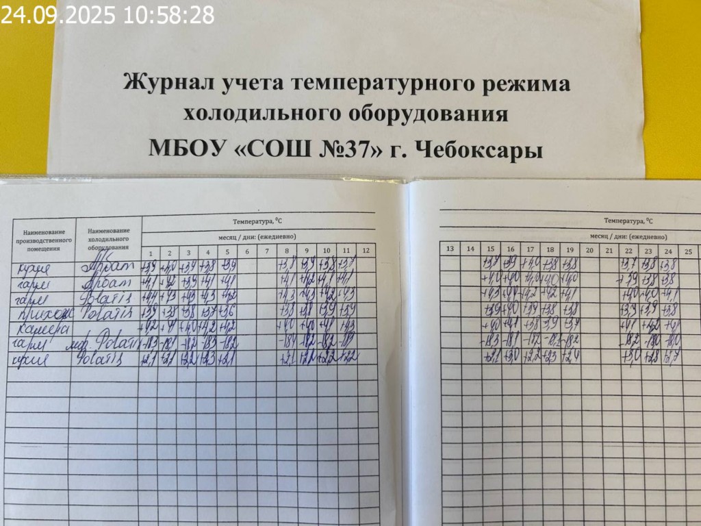 Журнал учета температурного режима холодильного оборудования |