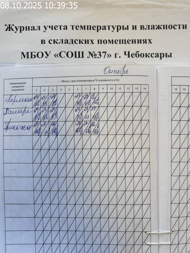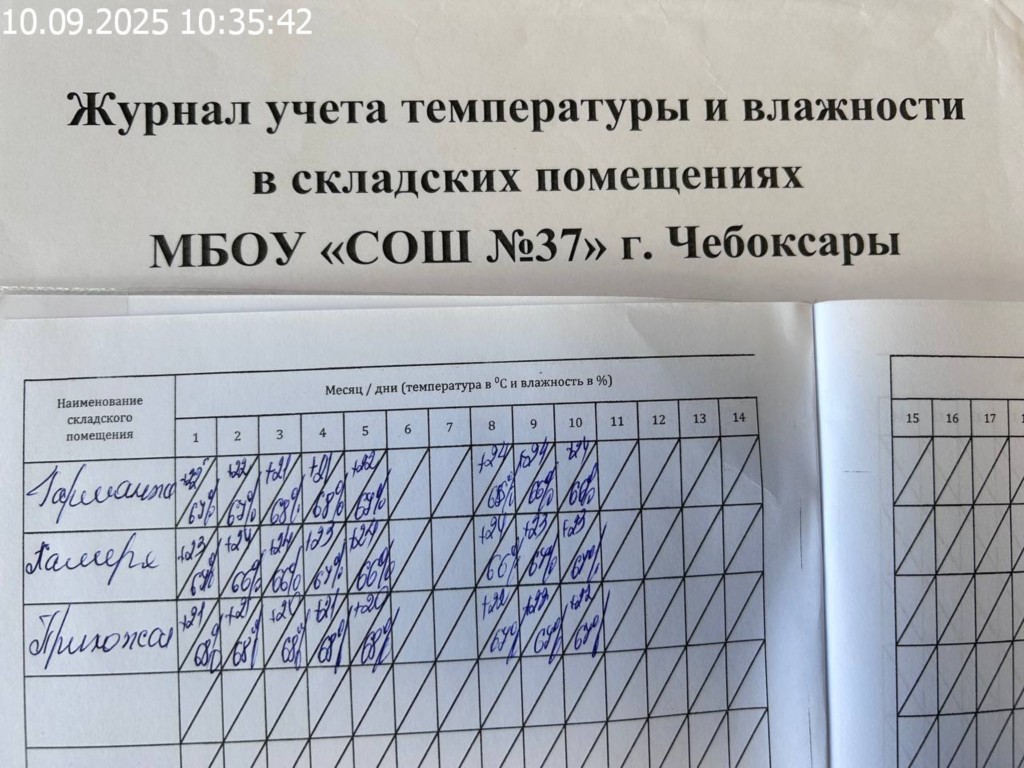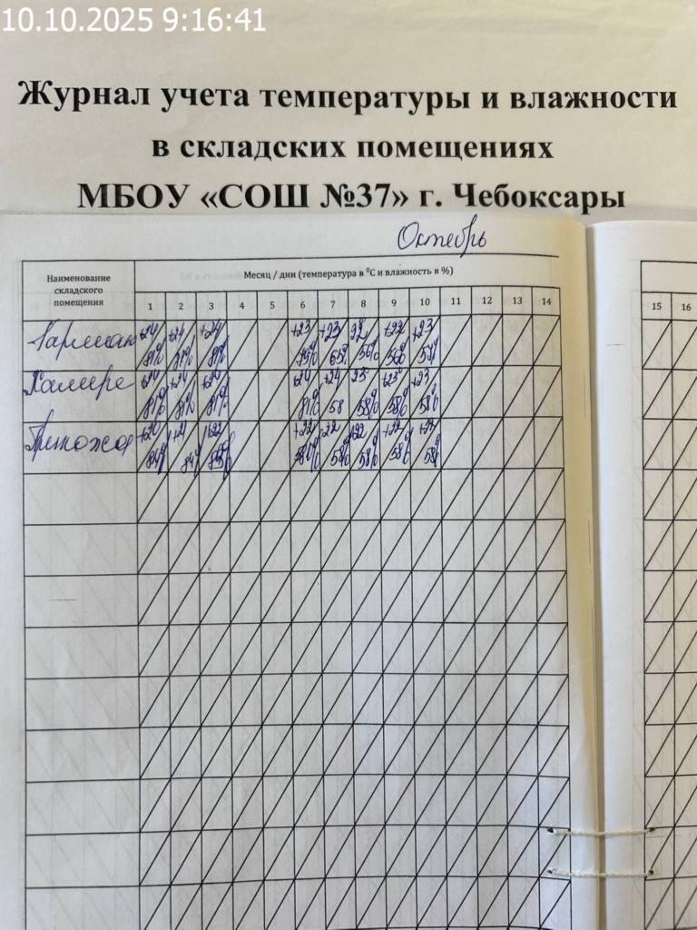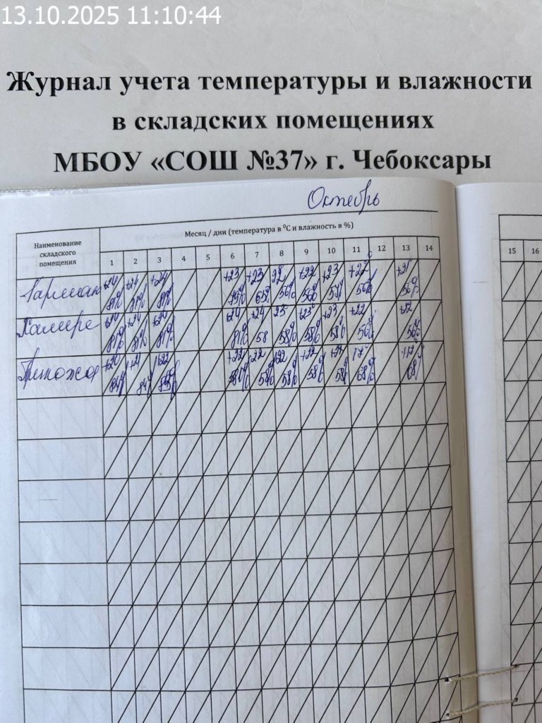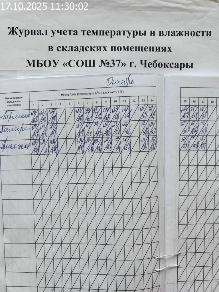 Журнал учета температуры и влажности в складских помещениях |