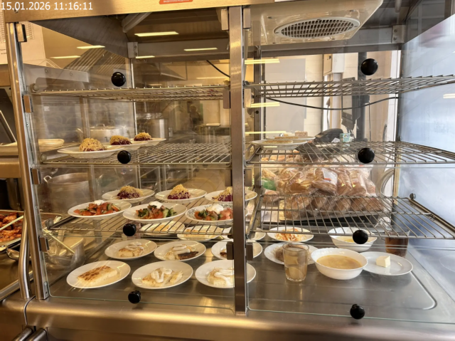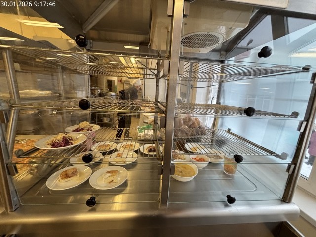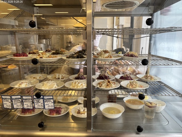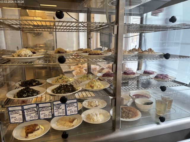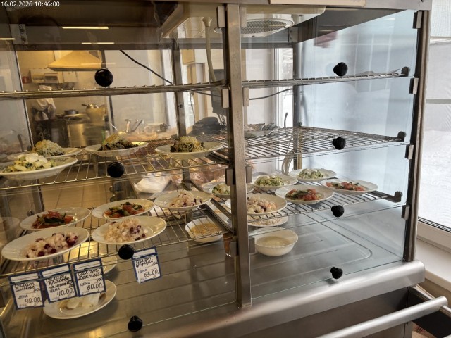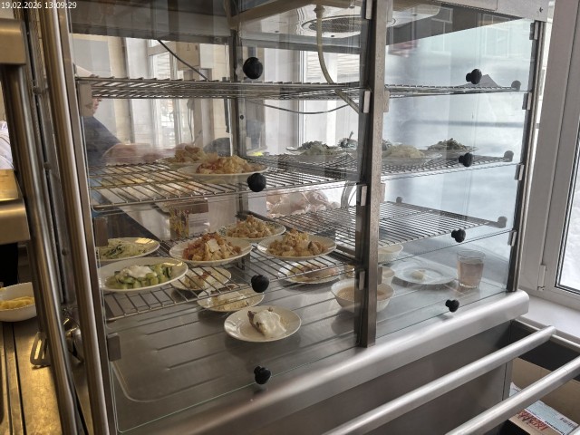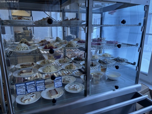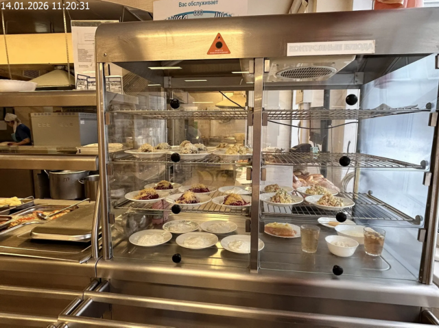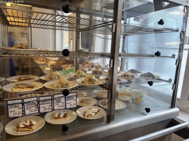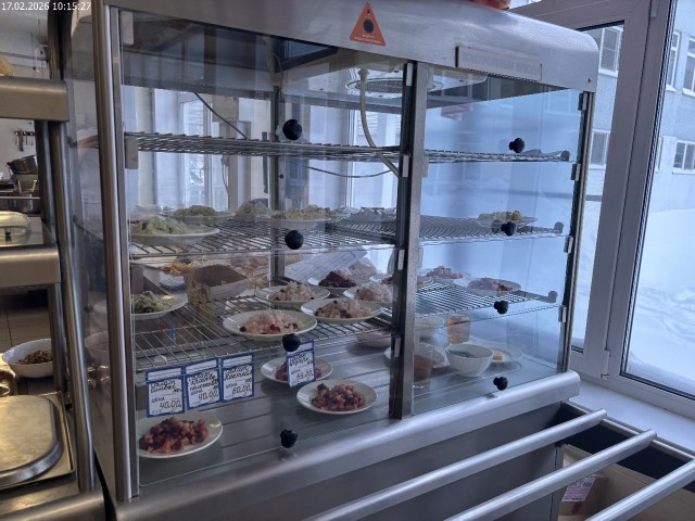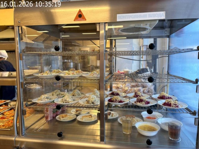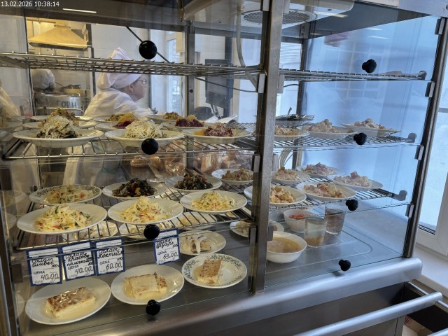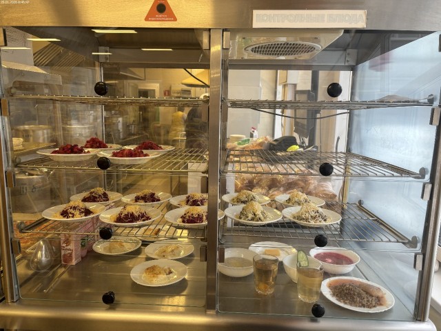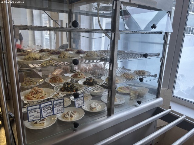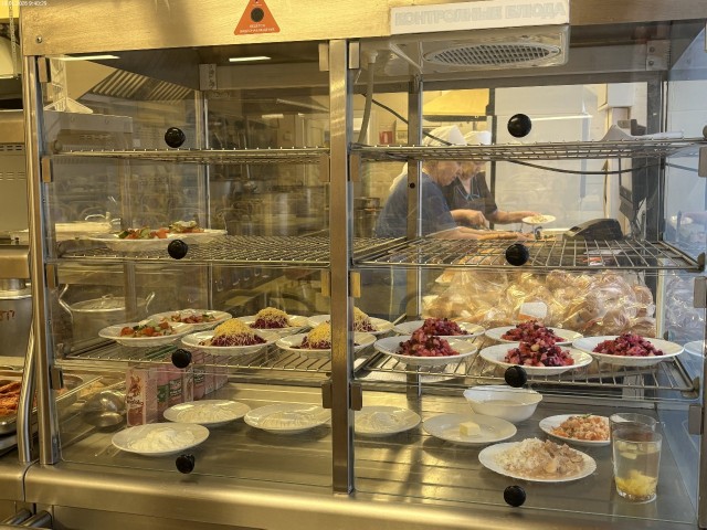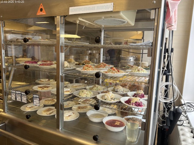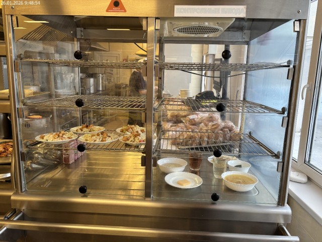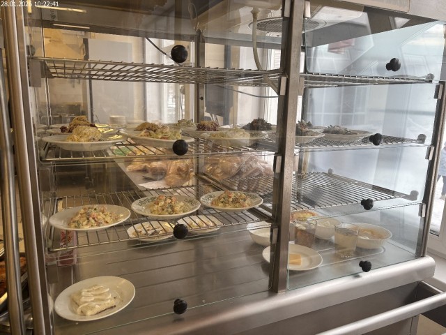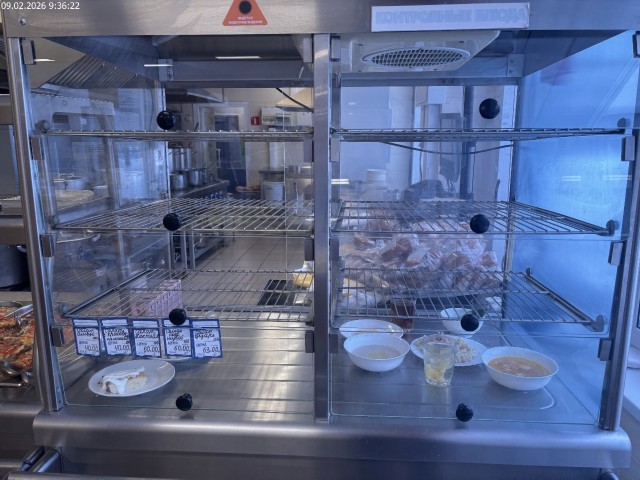 Зона раздачи с контрольными блюдами. Буфетная продукция |