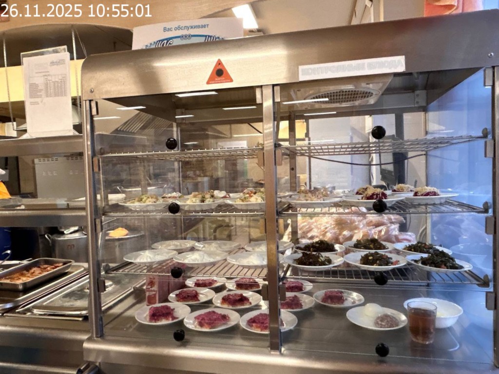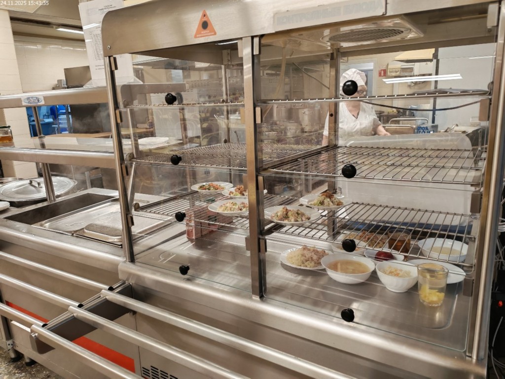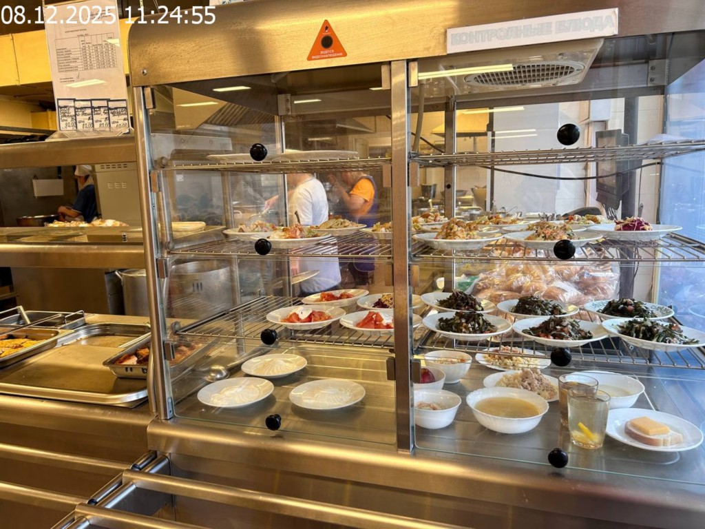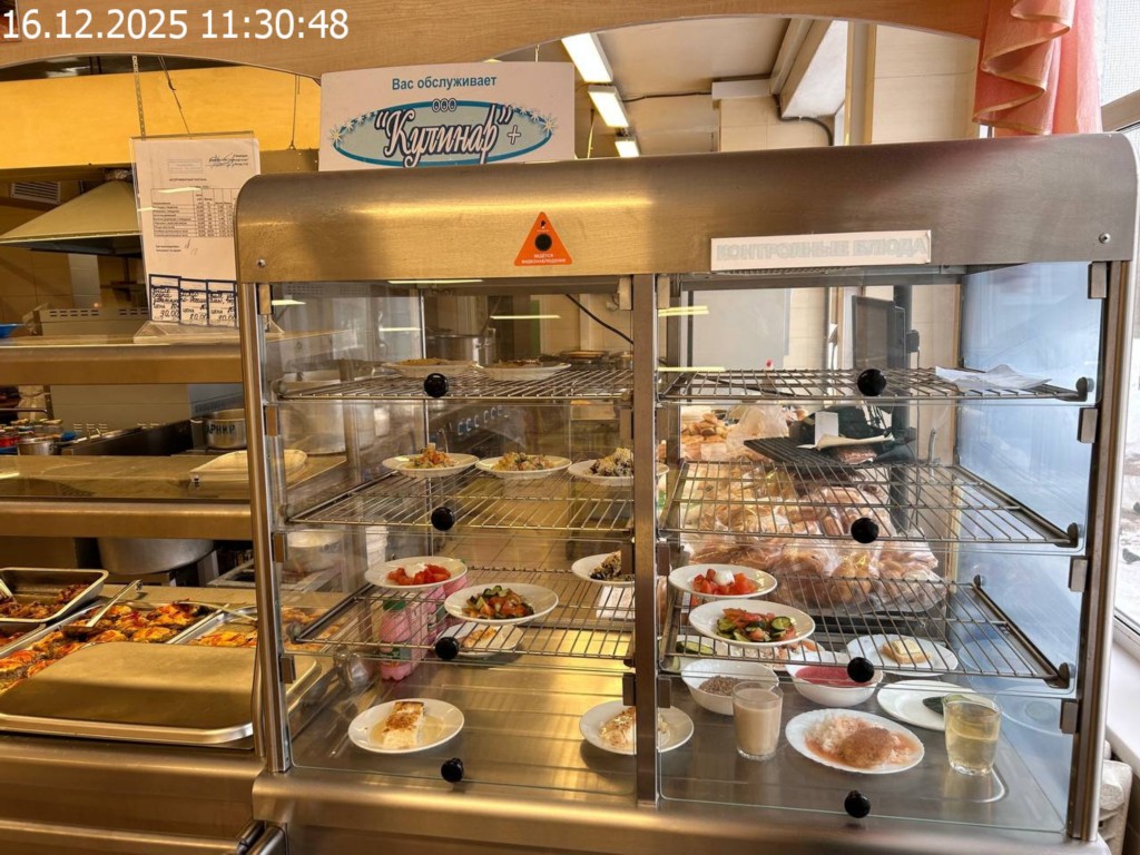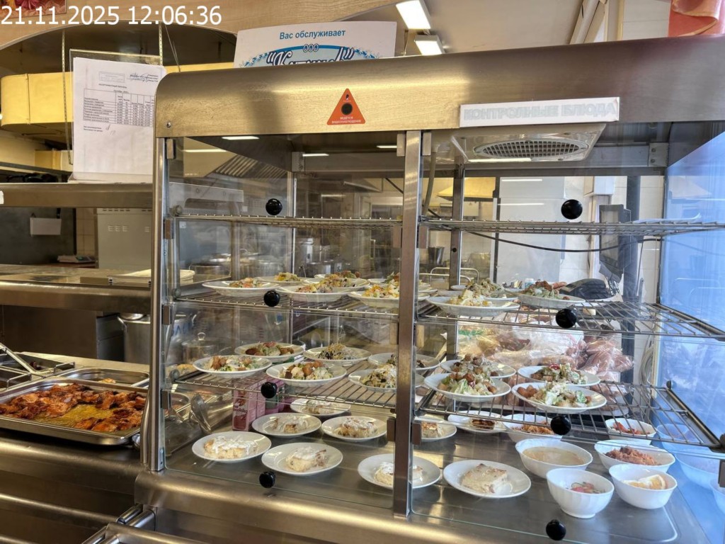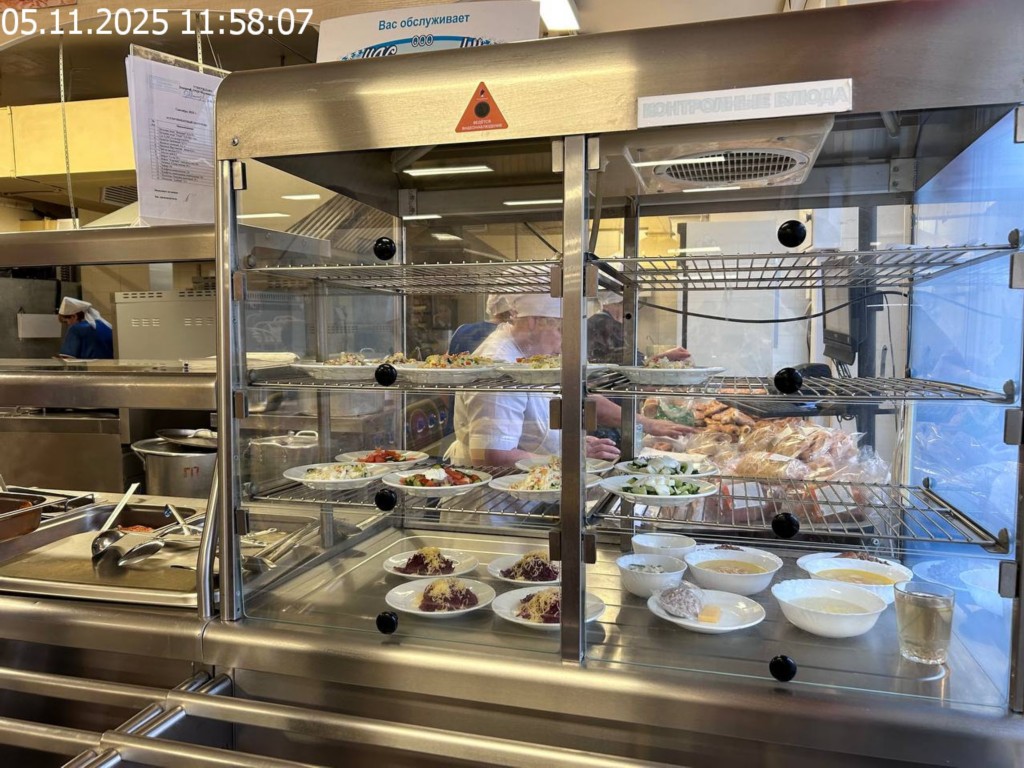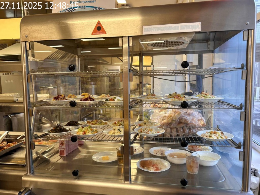 Зона раздачи с контрольными блюдами.