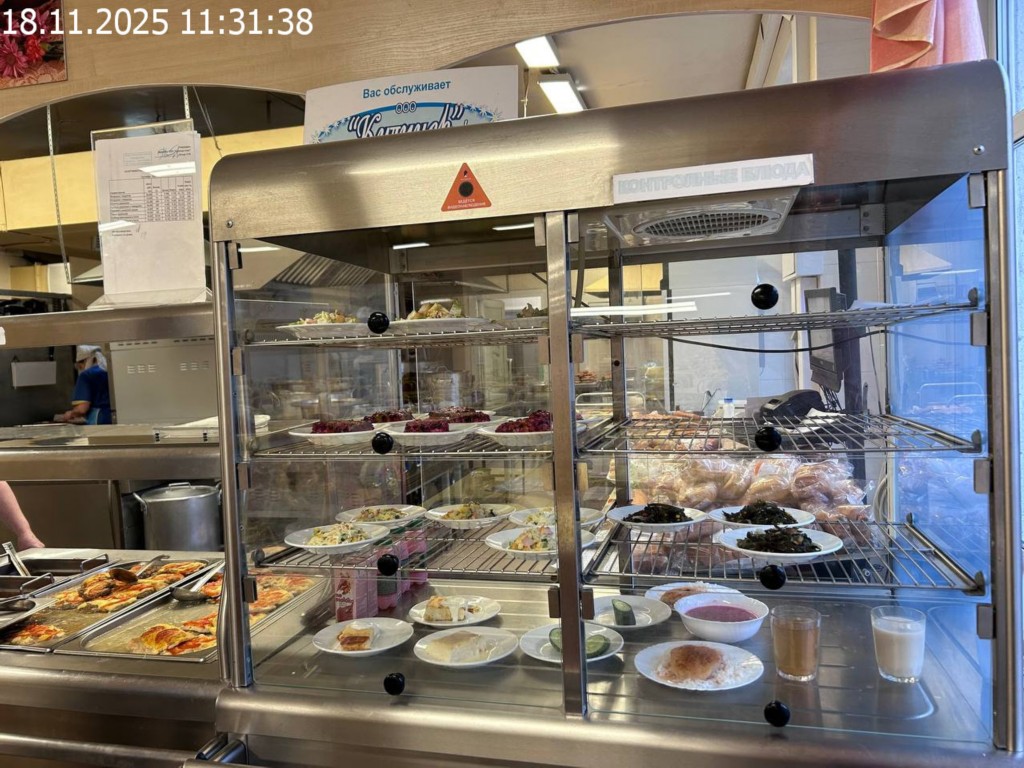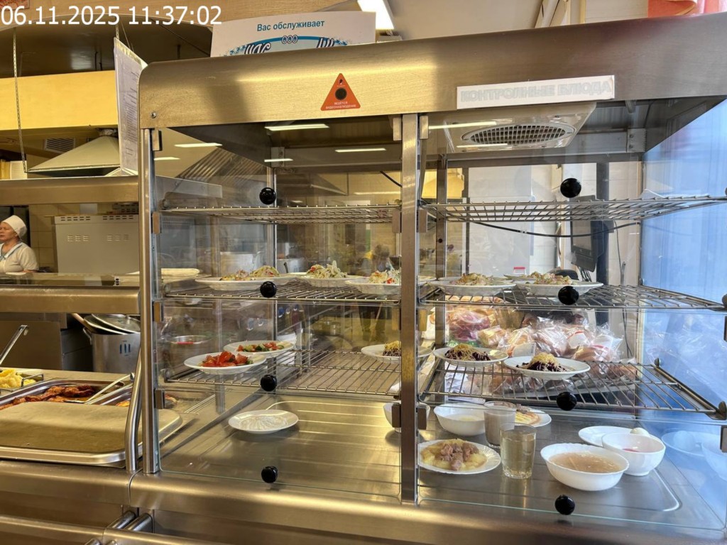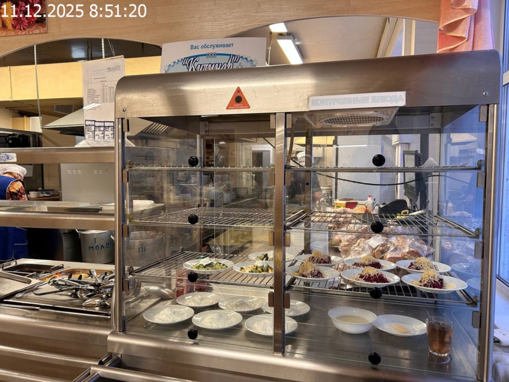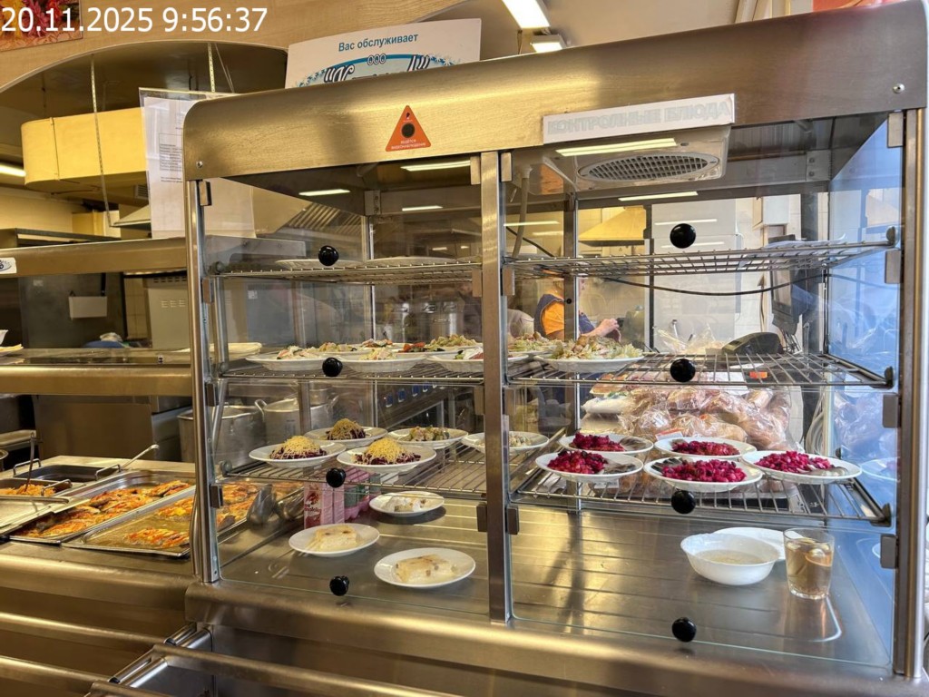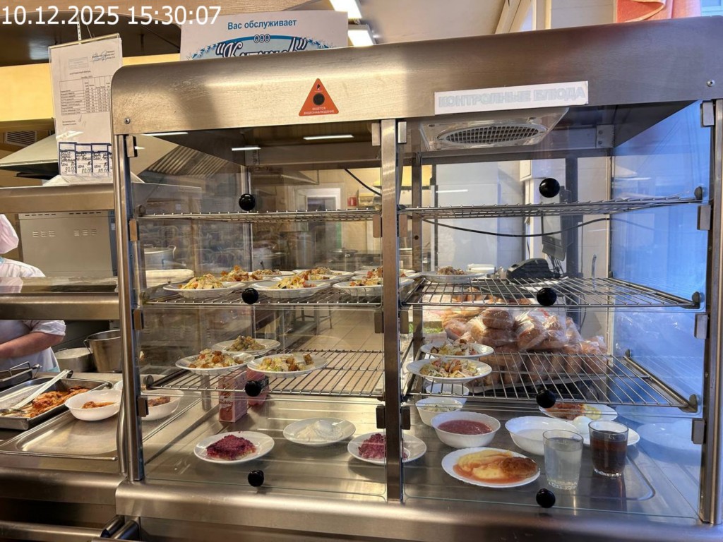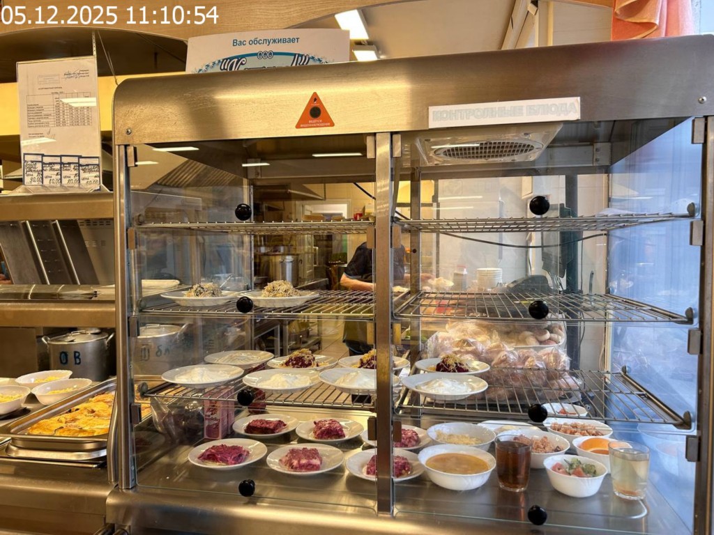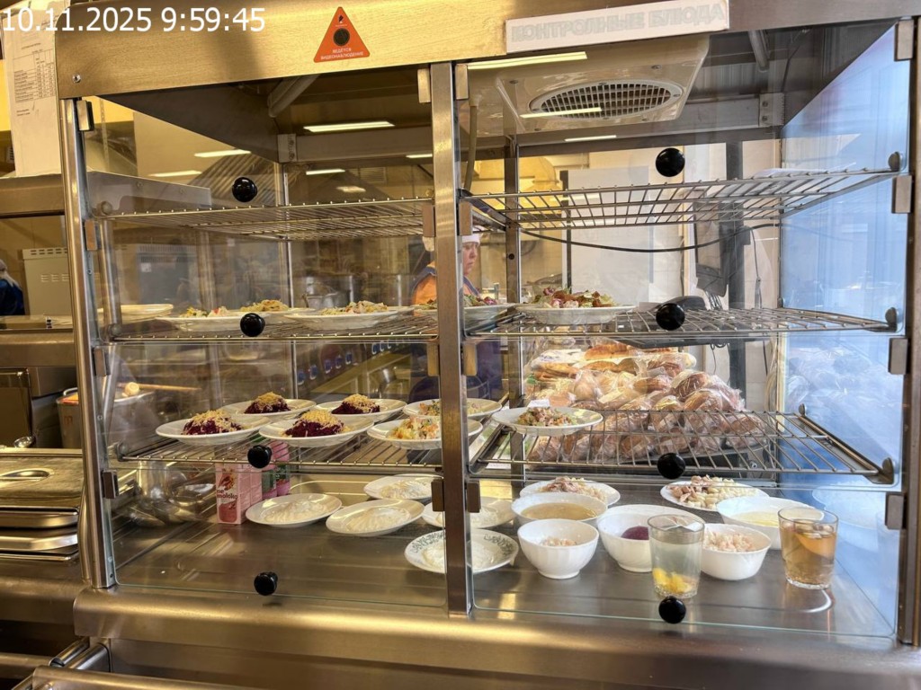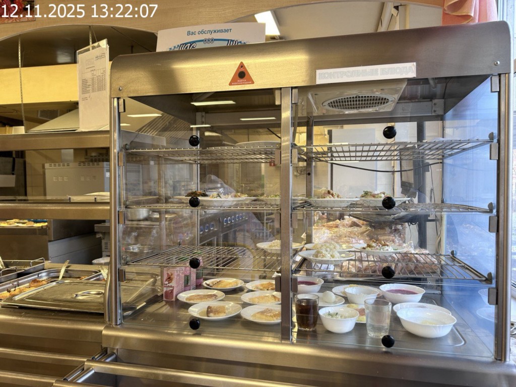 Зона раздачи с контрольными блюдами.