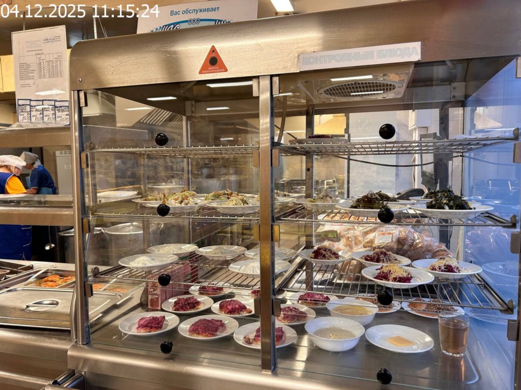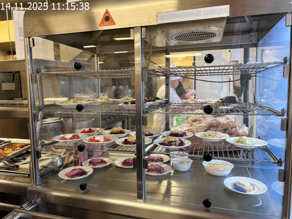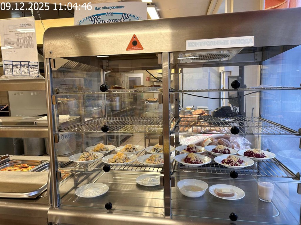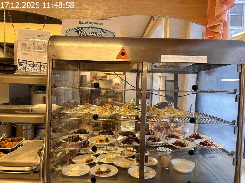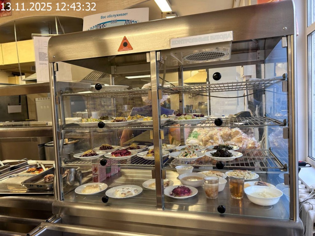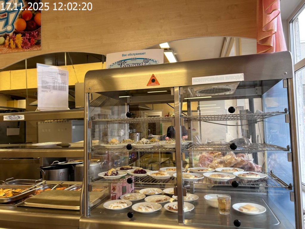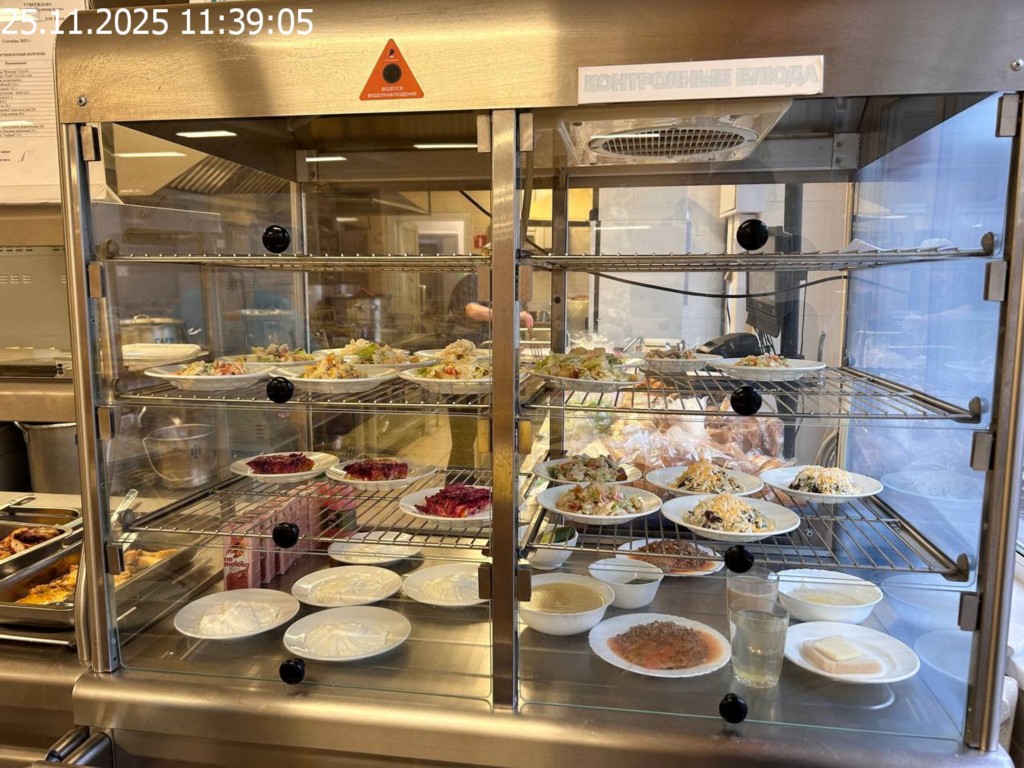 Зона раздачи с контрольными блюдами.