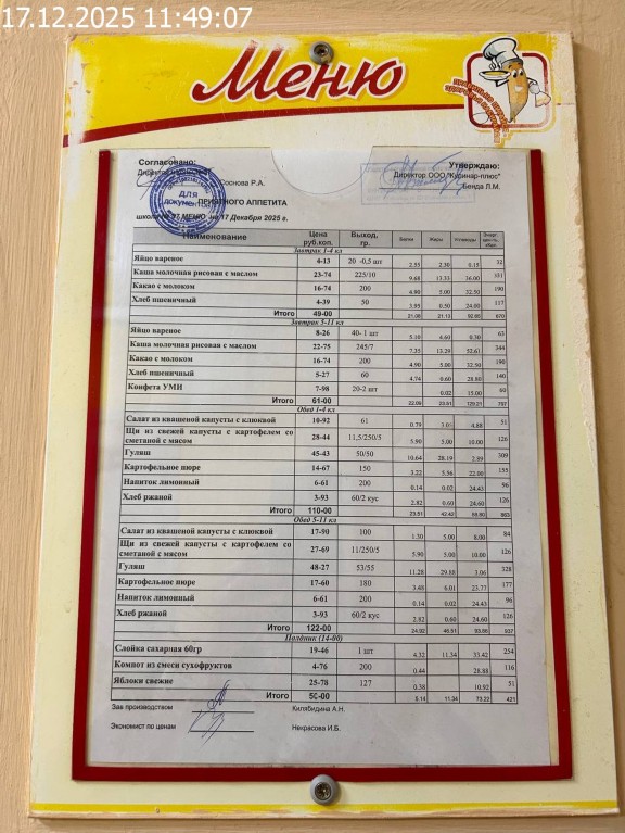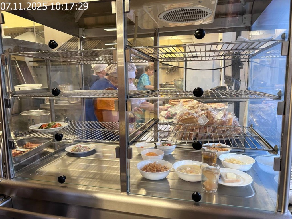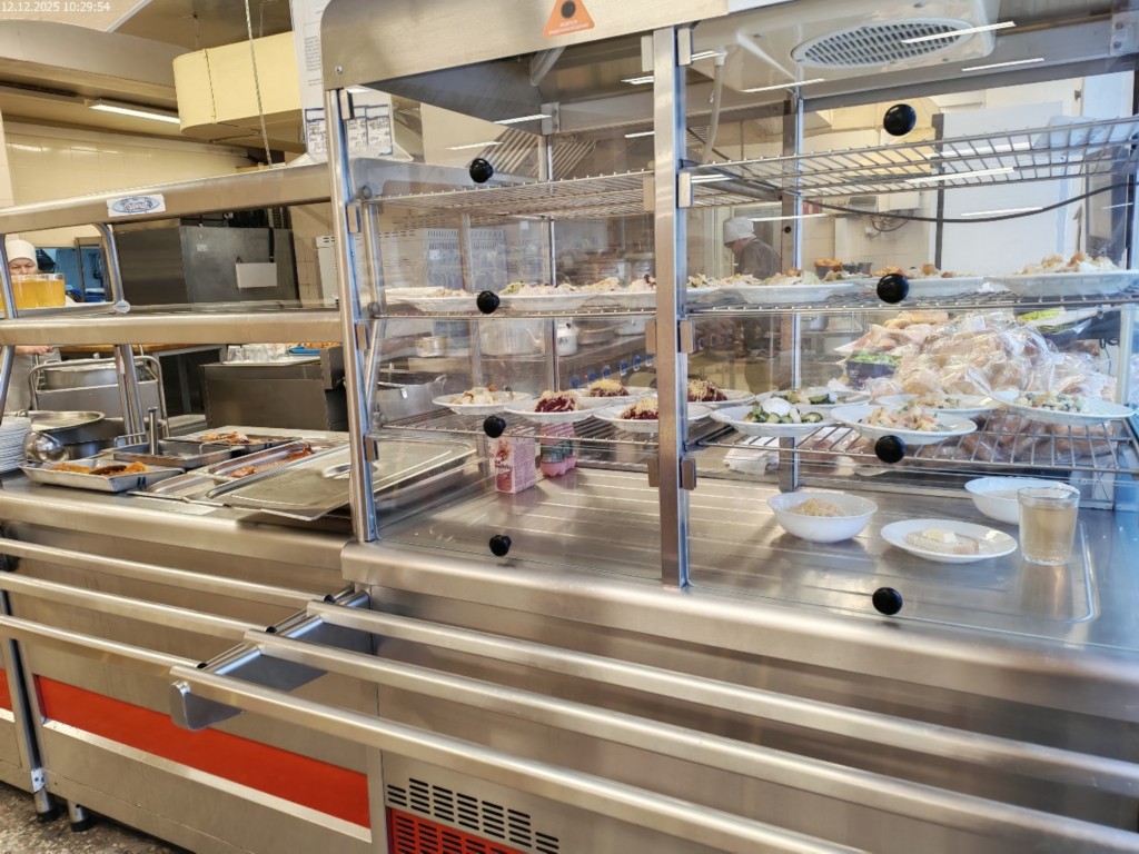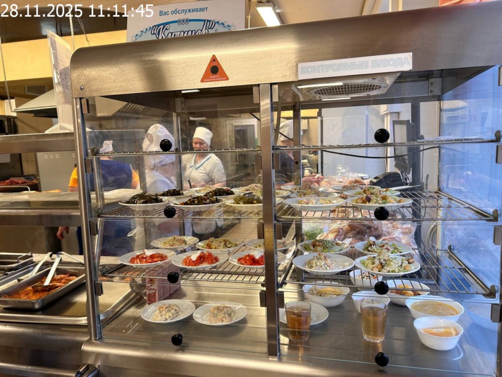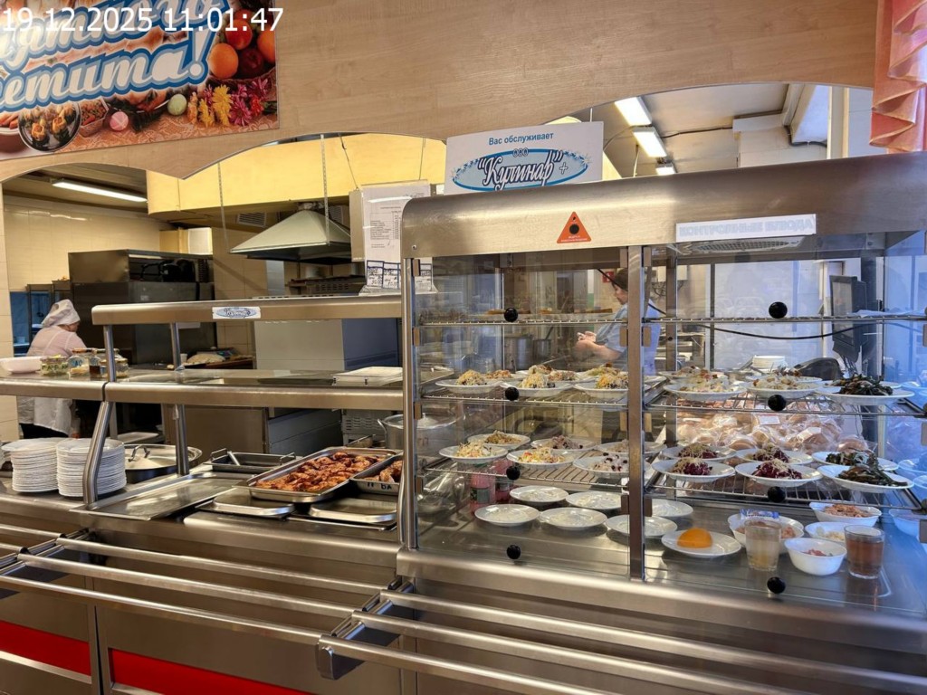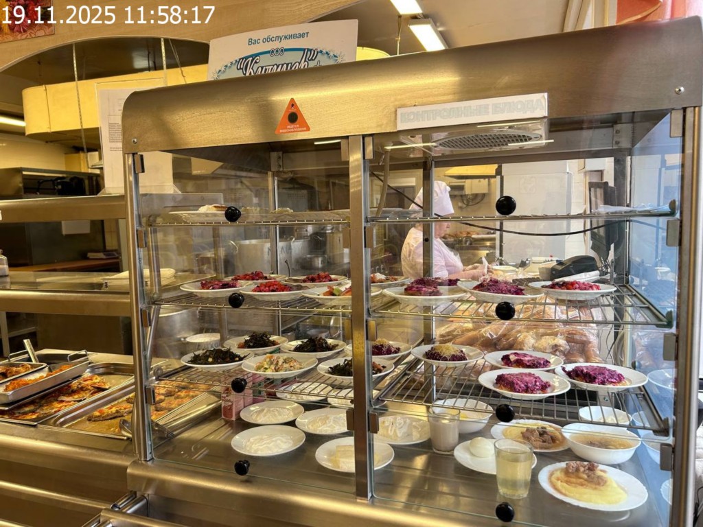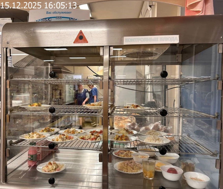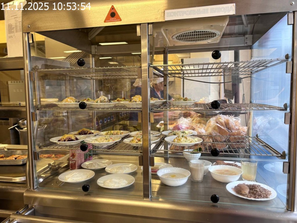 Зона раздачи с контрольными блюдами.
