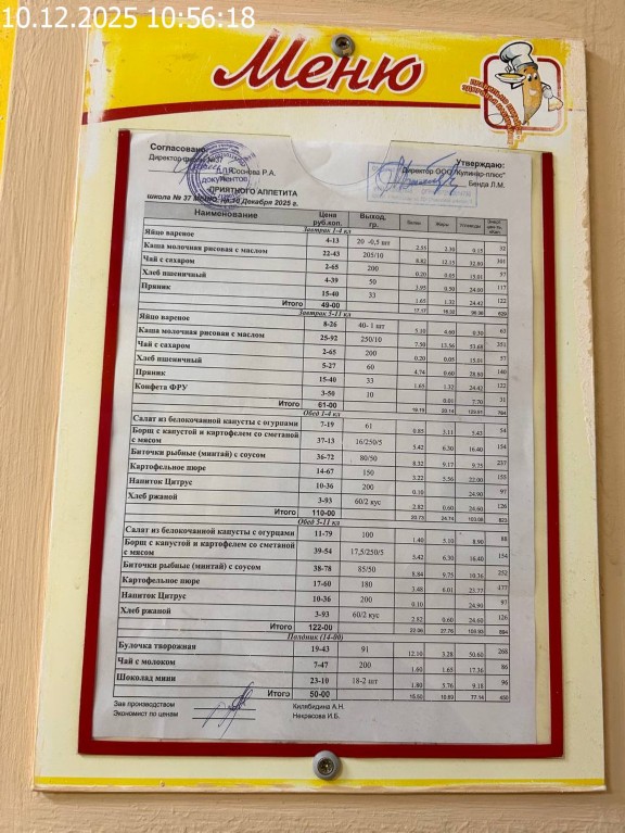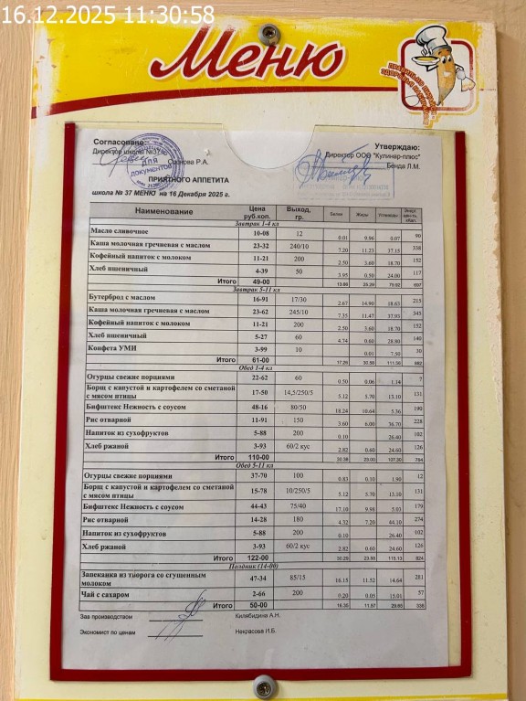 Зона раздачи с контрольными блюдами |